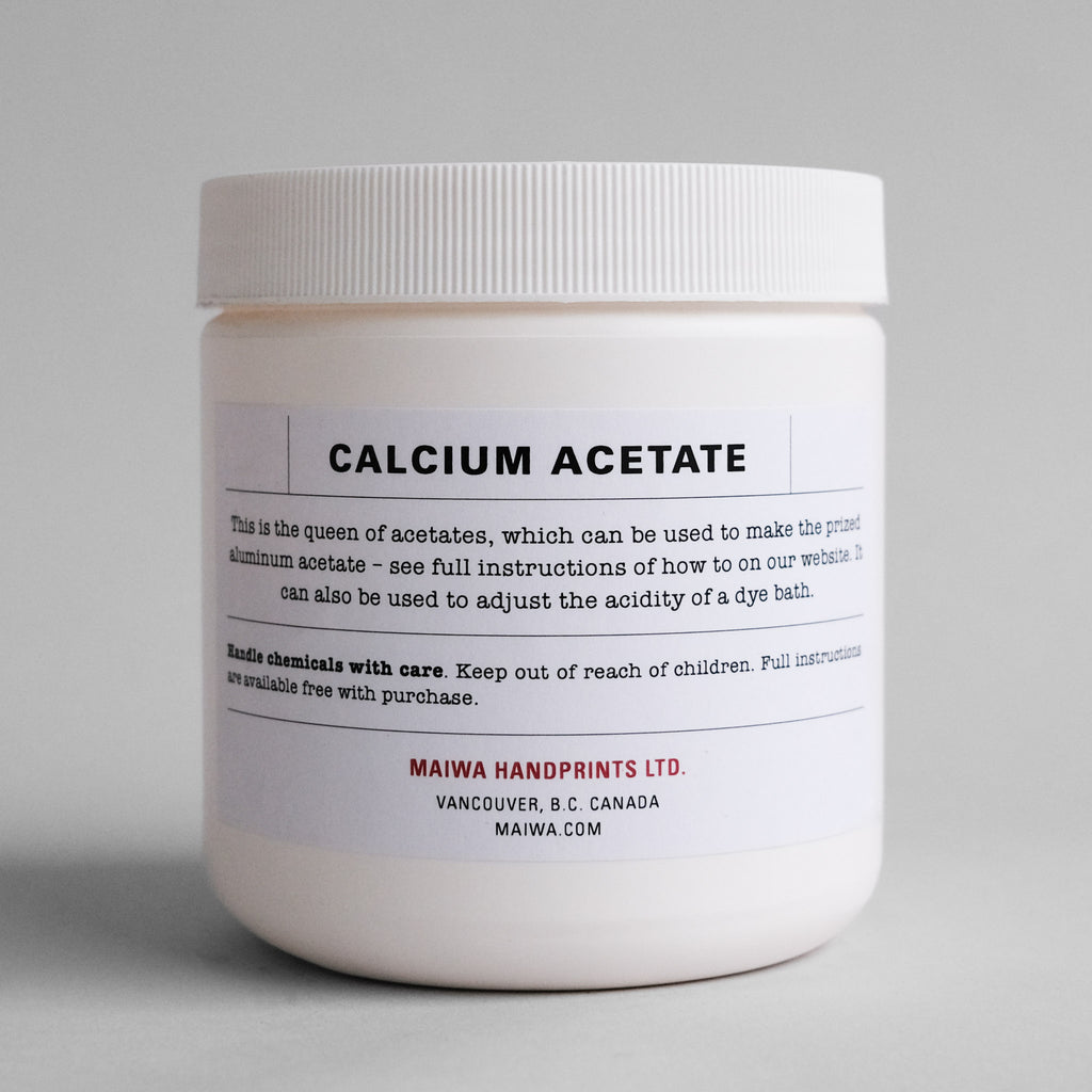 Calcium acetate may be used to make an aluminum acetate mordant. It is an alternative to sodium acetate.