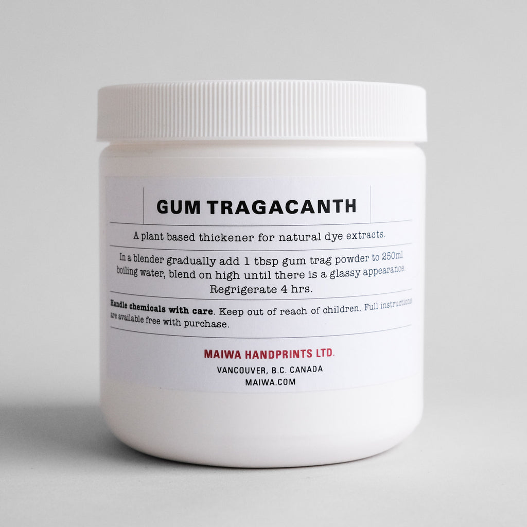 A natural thickening agent (polysaccharide) obtained from the sap of Iranian locoweed (Astragalus). Gum tragacanth is excellent for thickening natural dyes for handpainting. It is also the best thickener for vat dyes.