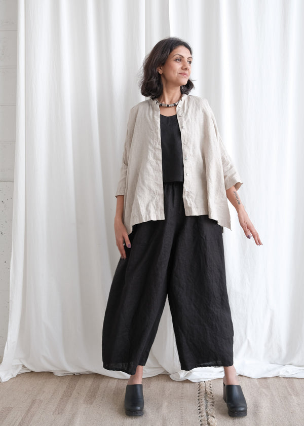 We design and sew all of our clothing in-house in our own studios in Vancouver, Canada, and in India. Our garments feature a range of artisan techniques such as handwoven cloth, handspun threads, block printing, ikat dyeing, hand-tied bandhani and natural dyes. Read more about Maiwa's Slow Clothes and how they fit a variety of body types.