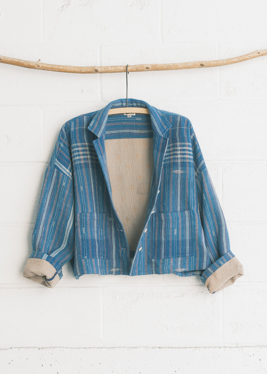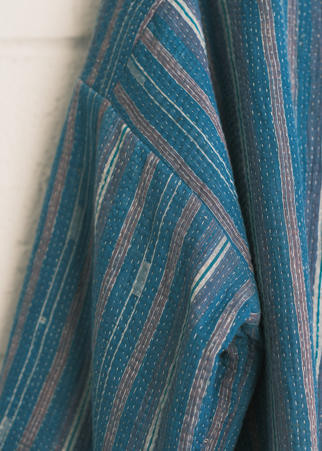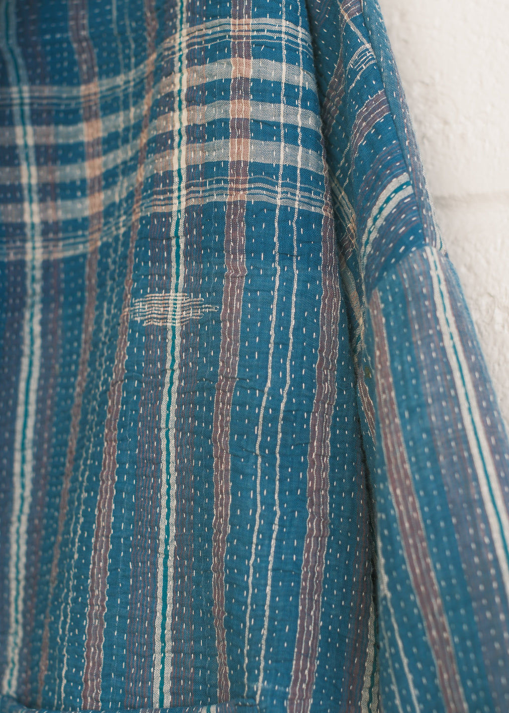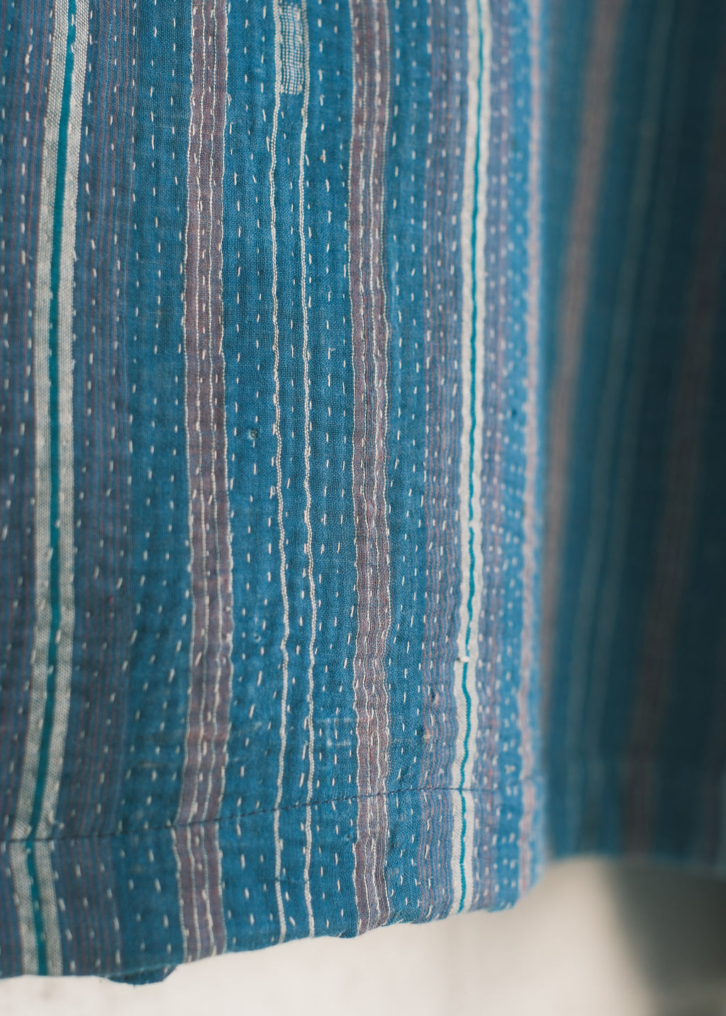 This piece is made from a beautiful kantha quilt. Favourite prints, saris, and beloved lengths of cloth are stitched together with plain and coloured threads. Every quilter has her own individual style.  We love the history and stories each one holds.