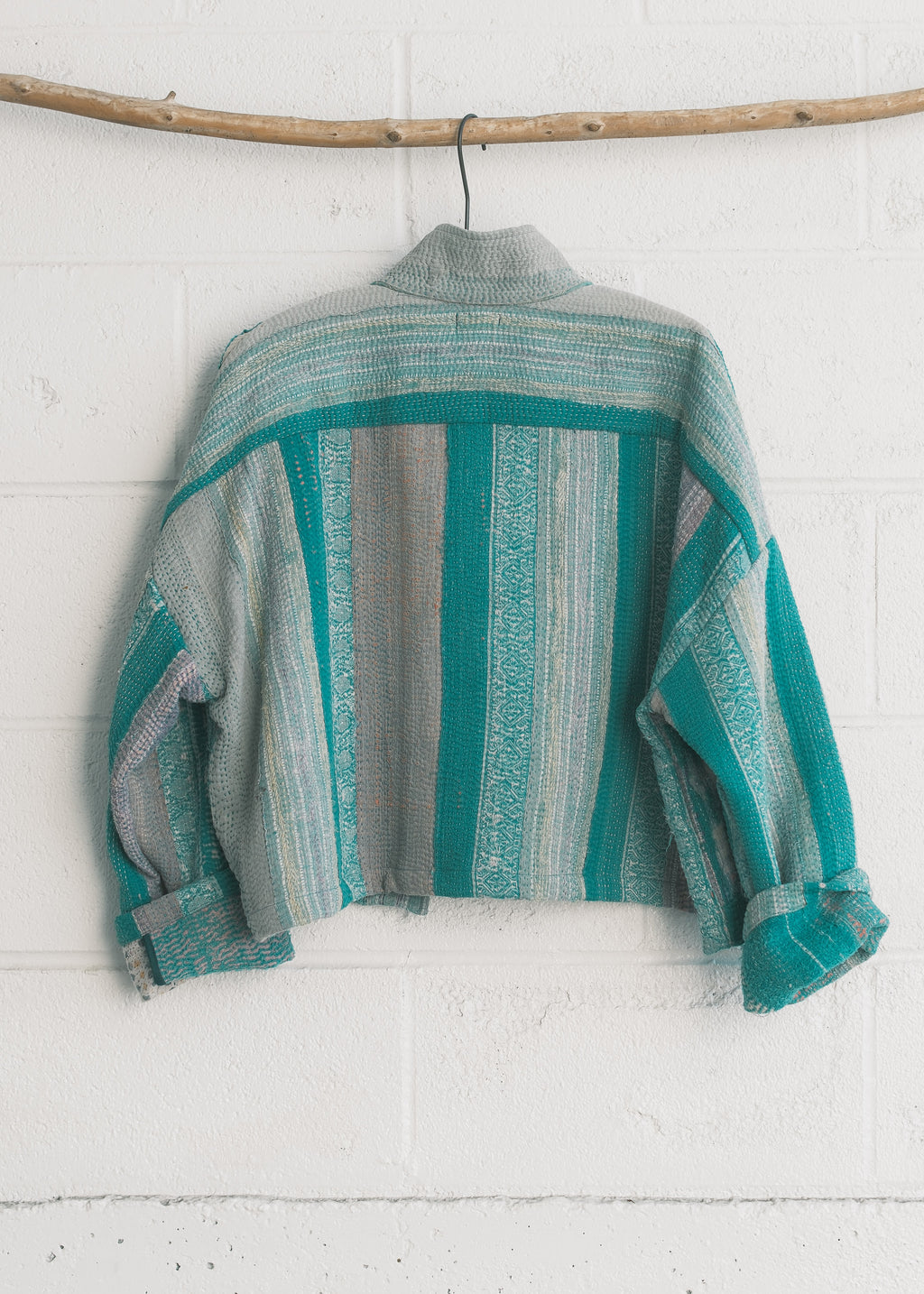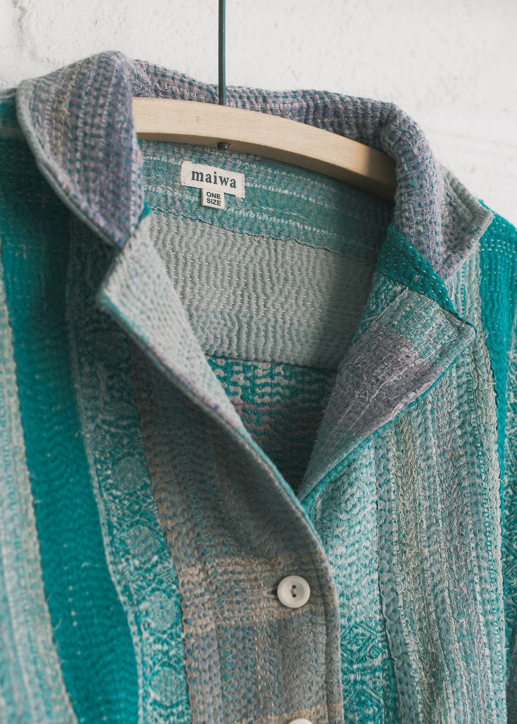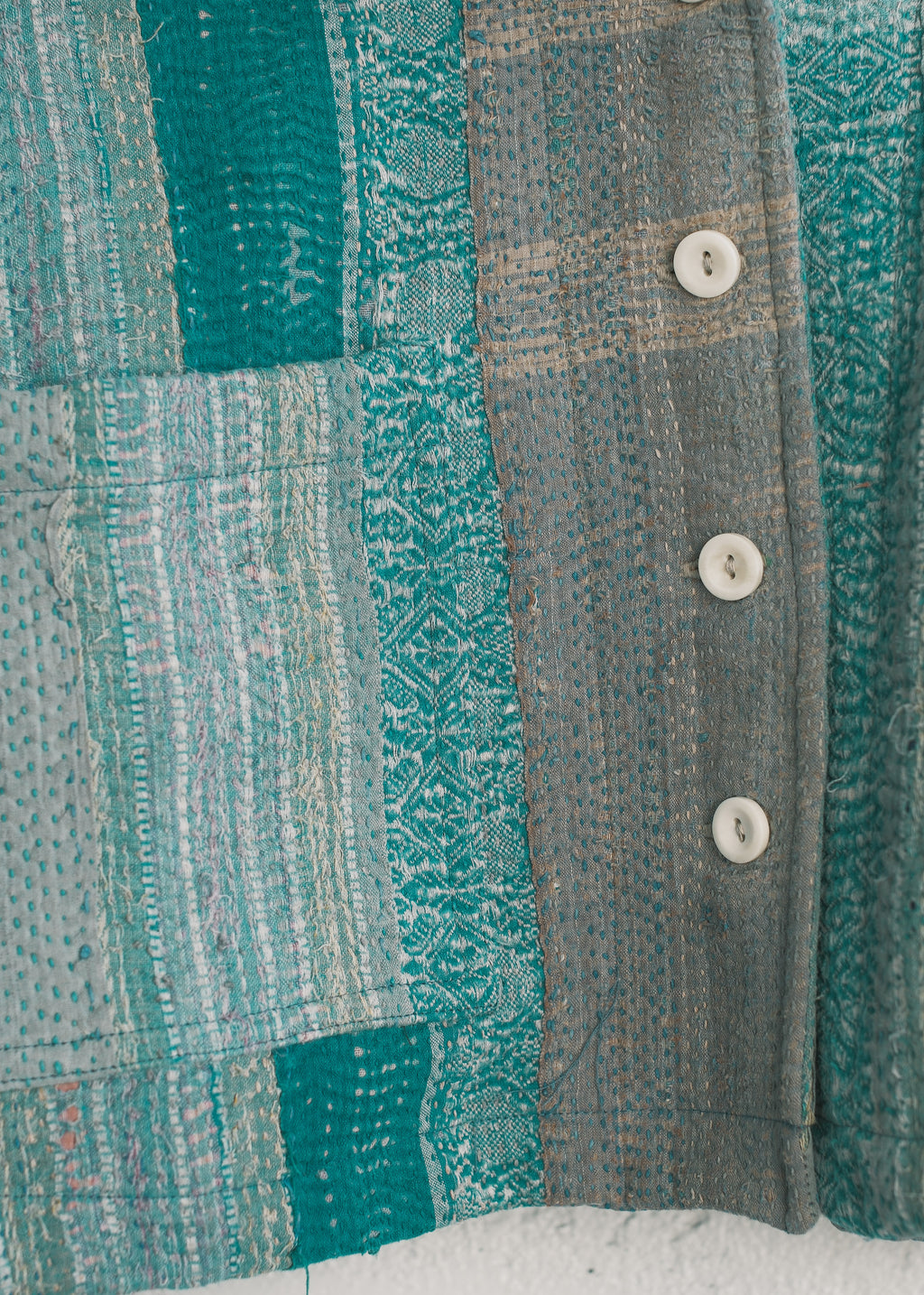 Copal Button Up - Vintage Kantha - Ocean Crystals