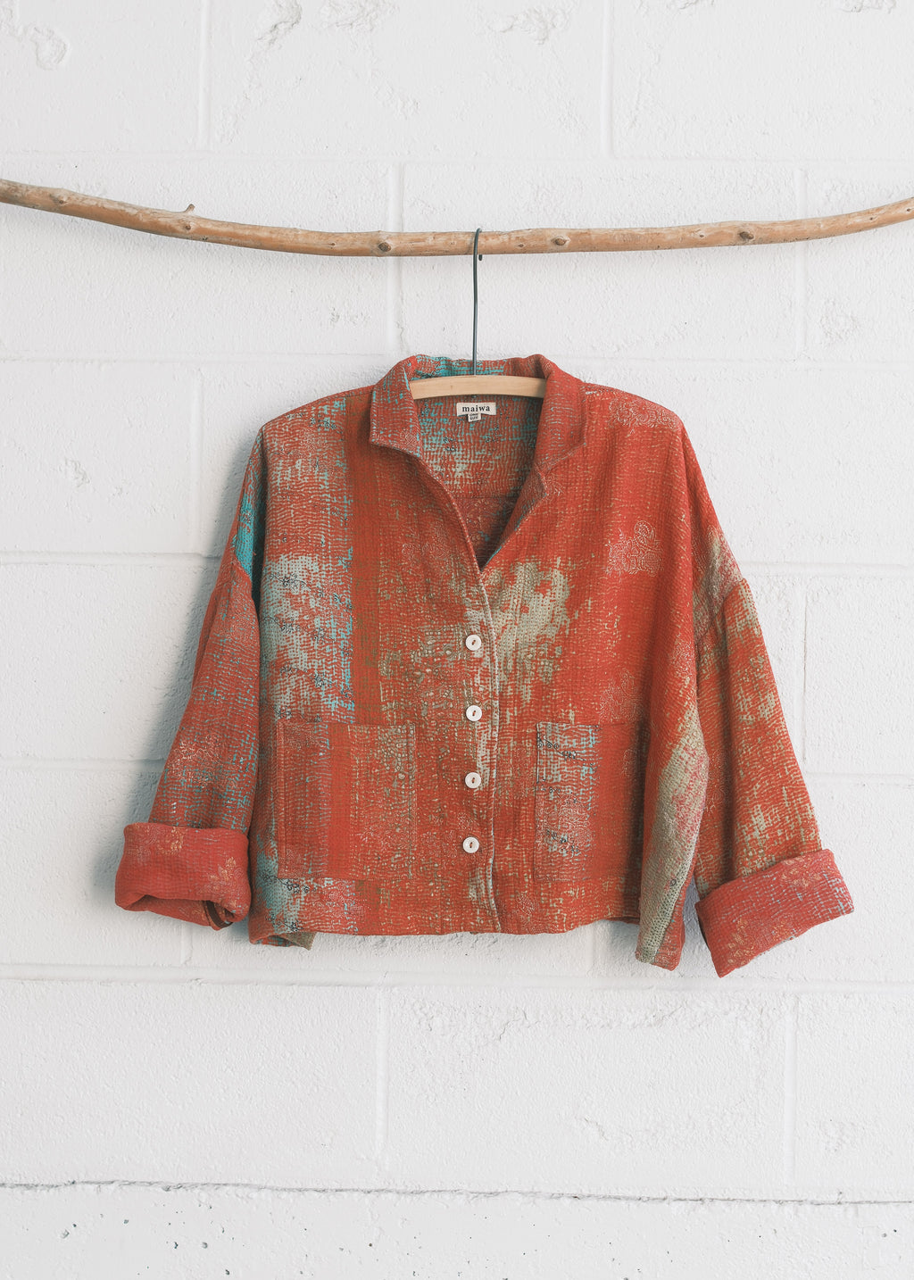 Copal Button Up - Vintage Kantha - Tiger Lily