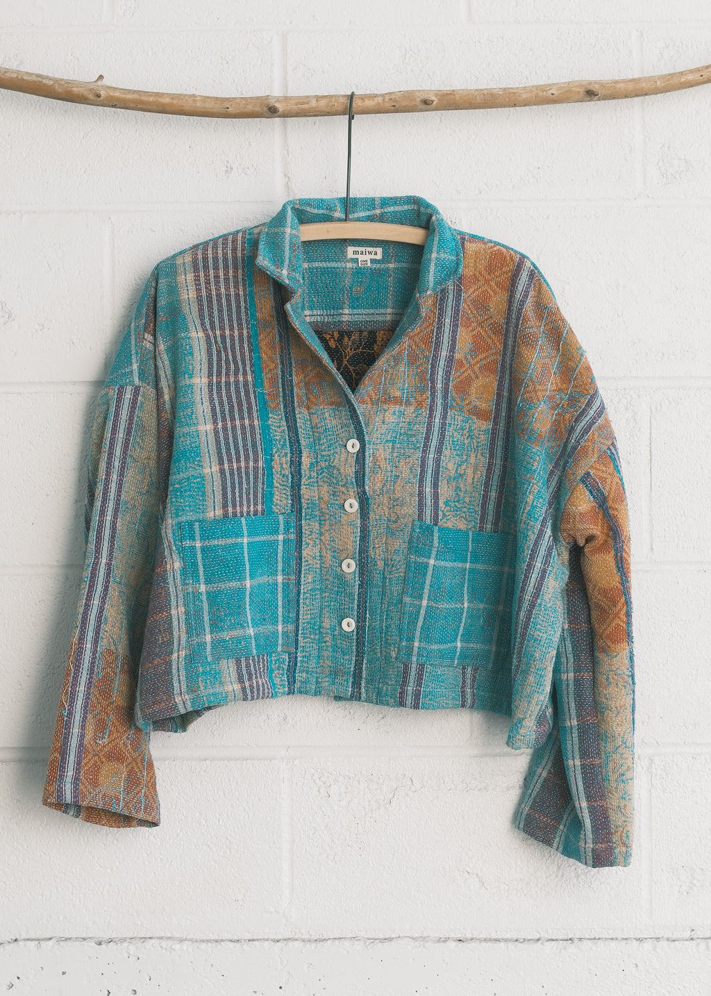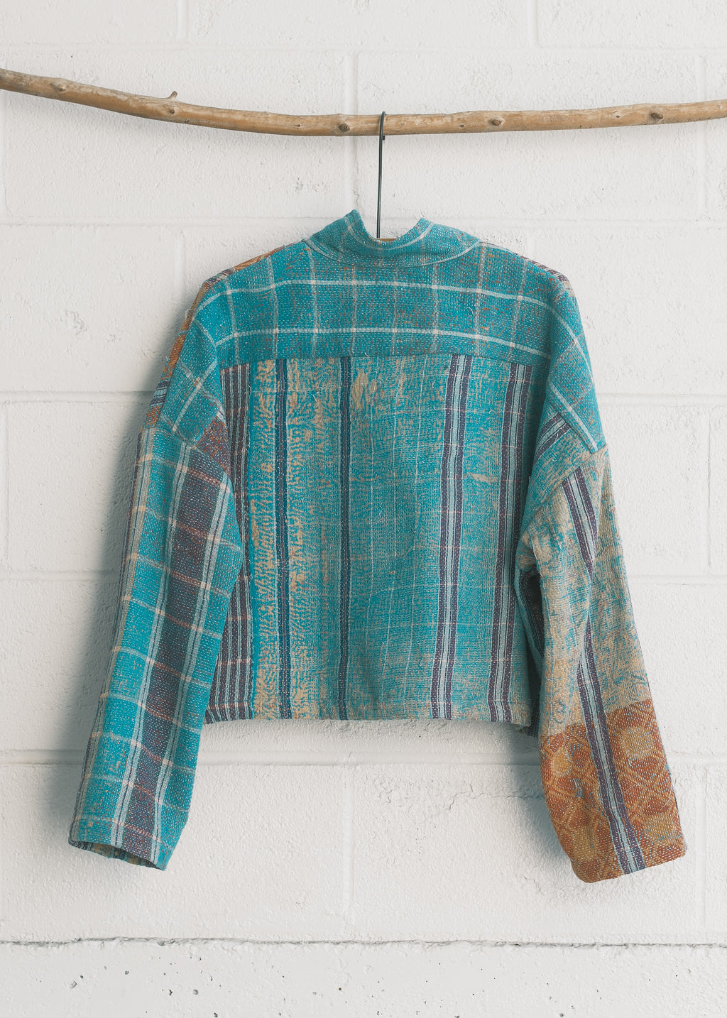 This piece is made from a beautiful kantha quilt. Favourite prints, saris, and beloved lengths of cloth are stitched together with plain and coloured threads. Every quilter has her own individual style.  We love the history and stories each one holds.