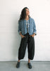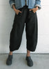 An exceptional pant - constructed with a multi-panel design and close attention to detail. The leg is finished with an oval hem to create a scalloped cuff — it perfectly shows off your ankle or footwear. A flat front punctuated by a line of hand-carved horn buttons gives this garment an elegant closure. The styling is structural with clean lines and flawless shaping to the pant-leg.