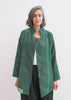 An elegant jacket with a straight cut, standing collar and one covered button closure at the collarbone. Side vents at the hip and inseam pockets complete this piece.