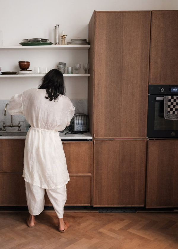 We design and sew all of our clothing in-house in our own studios in Vancouver, Canada, and in India. Our garments feature a range of artisan techniques such as handwoven cloth, handspun threads, block printing, ikat dyeing, hand-tied bandhani and natural dyes. Read more about Maiwa's Slow Clothes and how they fit a variety of body types.