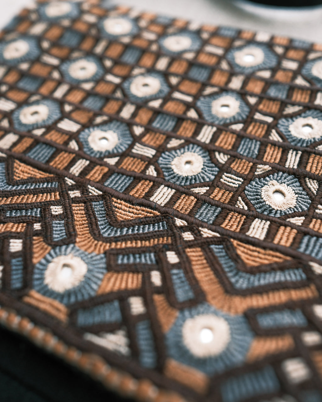 These embroideries bring the richness of desert cultures into your hands — heirlooms for the future. Each embroidery is a unique expression of the woman who made it. No two are the same.