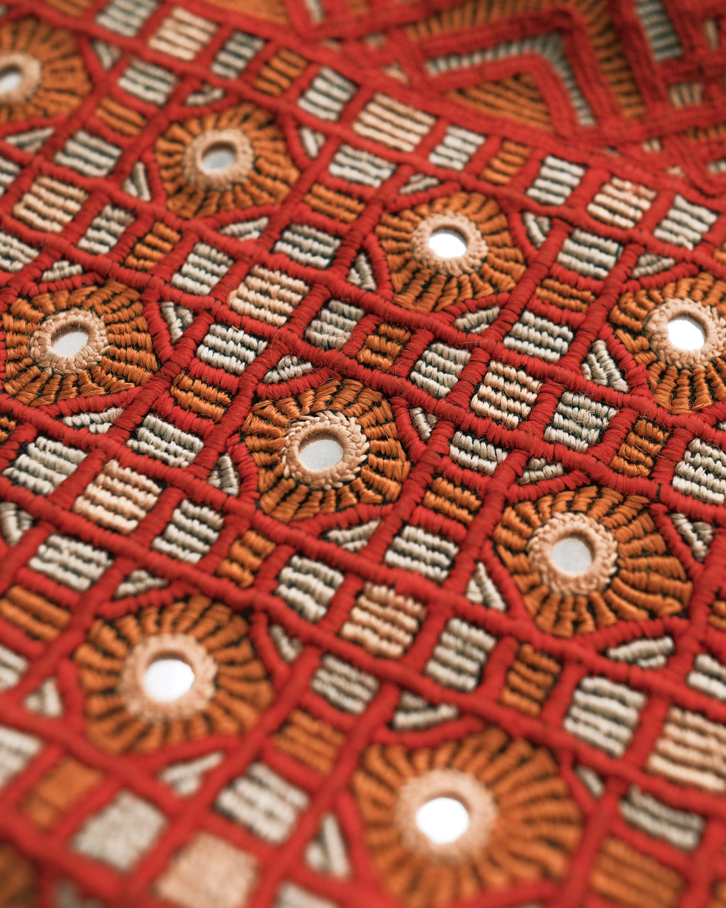 These embroideries bring the richness of desert cultures into your hands — heirlooms for the future. Each embroidery is a unique expression of the woman who made it. No two are the same.