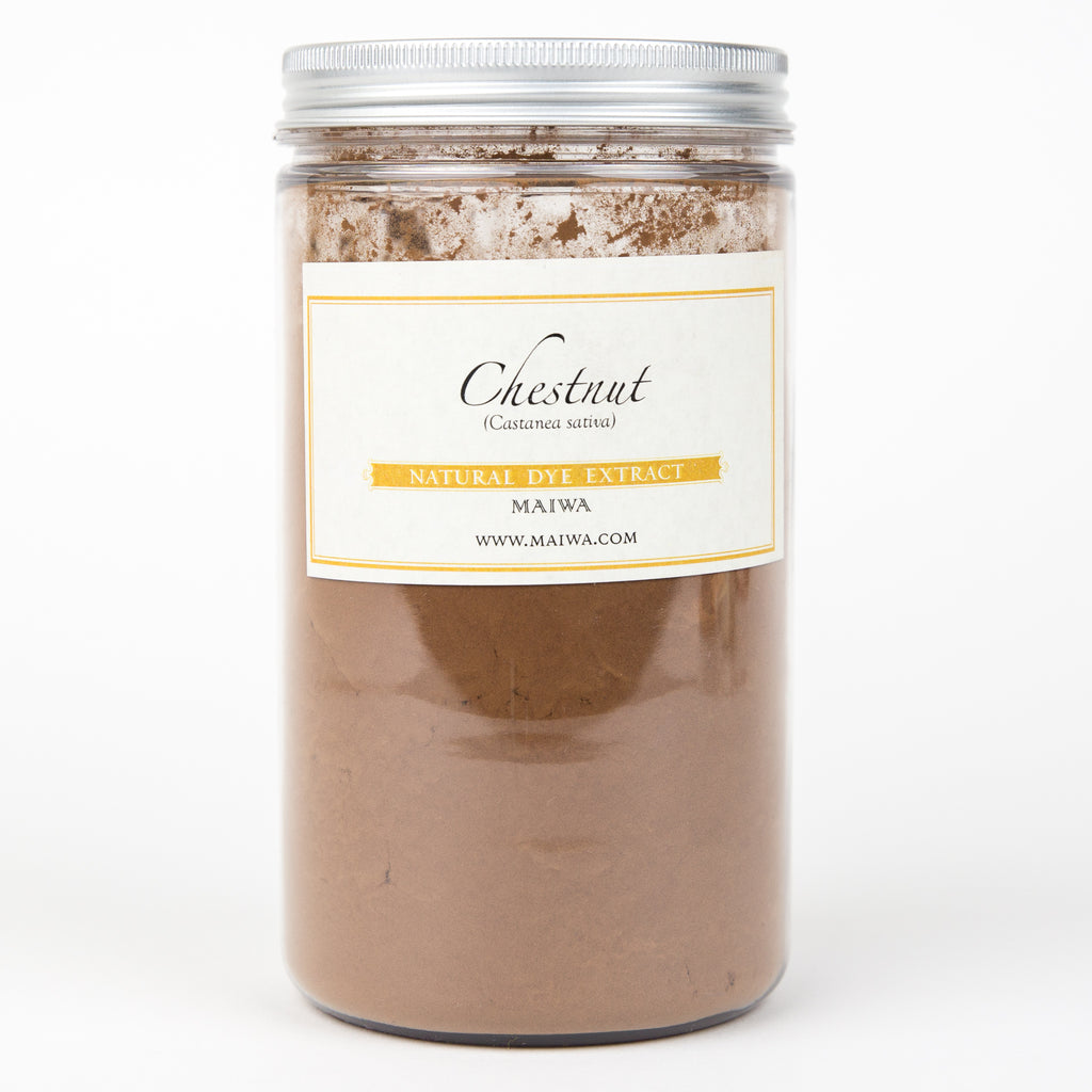 Chestnut trees grow in many parts of the world and contain a great source of tannin. They dye a warm brown colour. This dye is also well known for it’s ability to dye silk black with the addition of logwood and an iron mordant. Dyeing: Use extract on mordanted fibre at 5-10% WOF.
