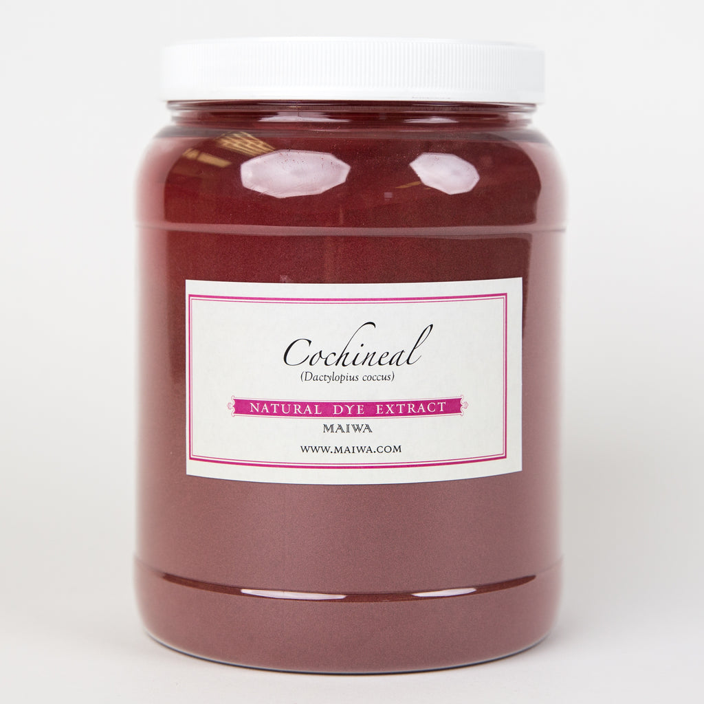 Cochineal is a parasitic insect that lives on the nopal cactus native to Central and South America. This dye has excellent light and washfastness and produces a powerful range of fuchsias, reds and purples mainly depending on mordents used and the dyes sensitivity to pH. Dyeing: Use extract on mordanted fibre at 0.5 - 2 % WOF.