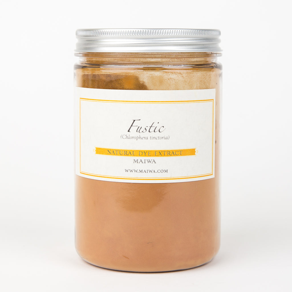 An extract prepared from the heartwood of a tree from the Mulberry family, Chlorophora tinctoria. Fustic produces a range of colours from daffodil yellow to deep gold to orange. When used as an underdye with indigo Fustic yields forest greens and teals. Fustic has a high light and washfastness and exposure to strong sunlight may actually darken colours.