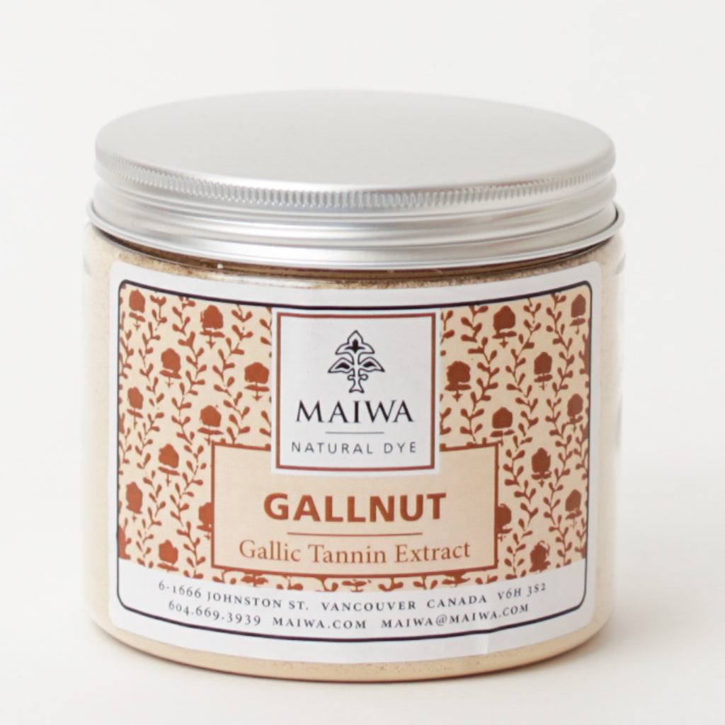 Gallnut is the earliest and richest source for natural colourless tannin and is found in the gallnuts of oak trees. They are produced by insects who deposit their eggs in small punctures they make on young branches. The tree excretes a tannin rich substance that hardens to form a gallnut. These are collected and ground for use as a tannin mordant for cellulose fibres, in the leather tanning industry, and for medicine. This extract is a rich source of gallic acid. Mordant using 6%-8% WOF