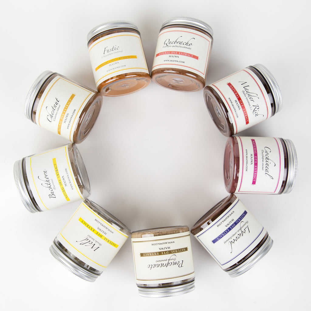 Currently the larger sizes of natural dye extracts are priced at wholesale rates. Our rates reflect a growing discount as the size increases. See all sizes here.