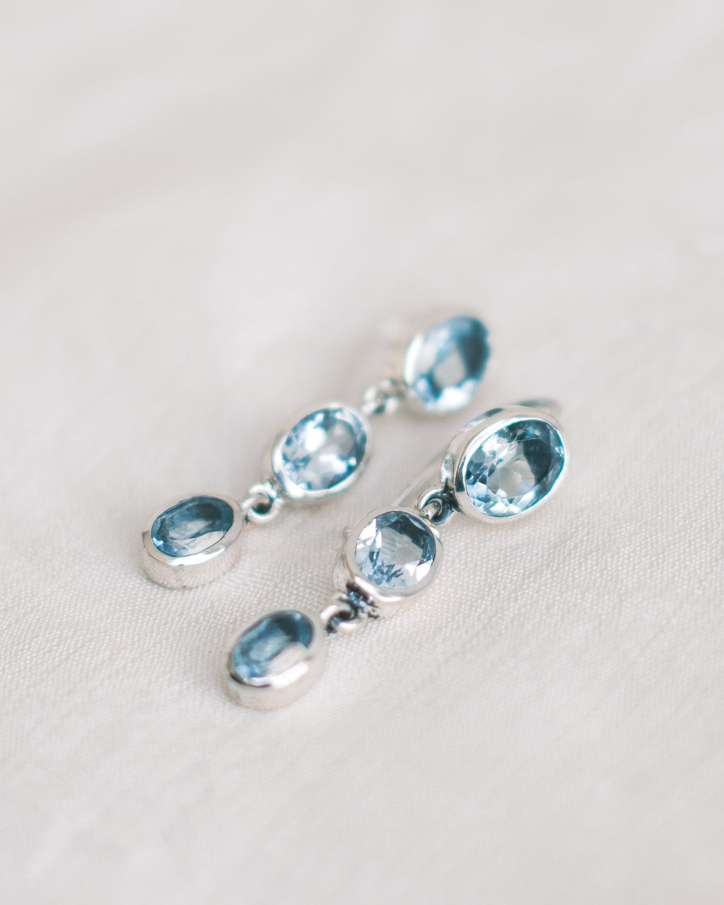 A set of exquisite 92.5 silver earrings with blue topaz.