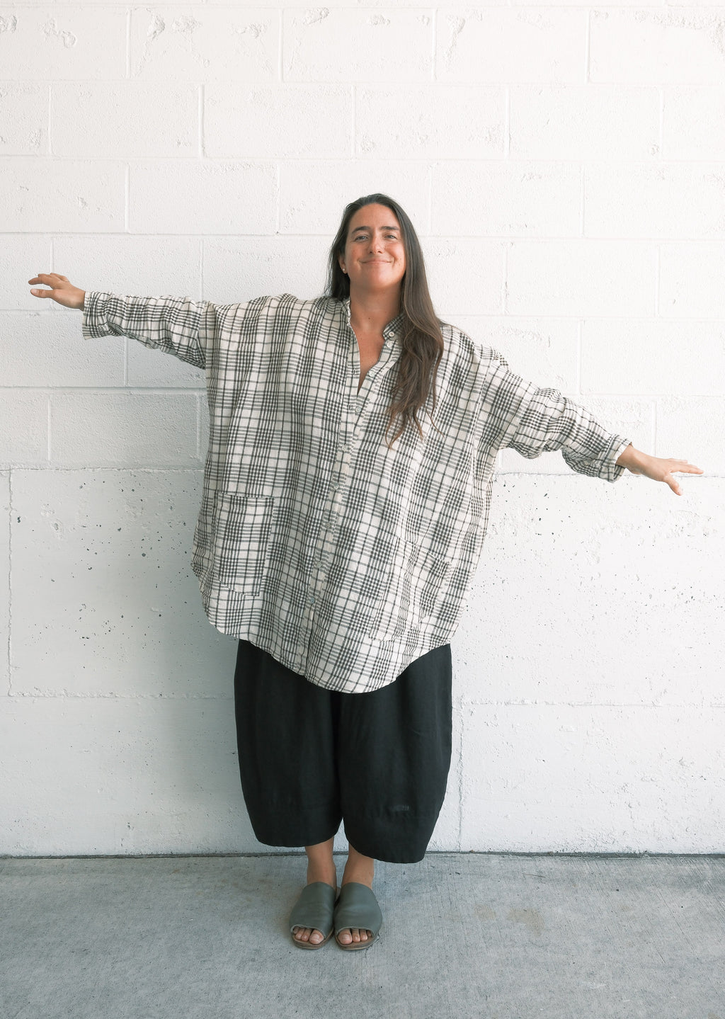 The perfect oversized shirt. The versatility of wearing it open or closed makes it a great layering piece and a Maiwa favourite. The Shimoga Shirt stays true to what we believe about timeless sustainable design; it's easily worn year round.