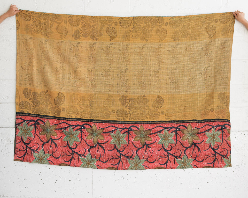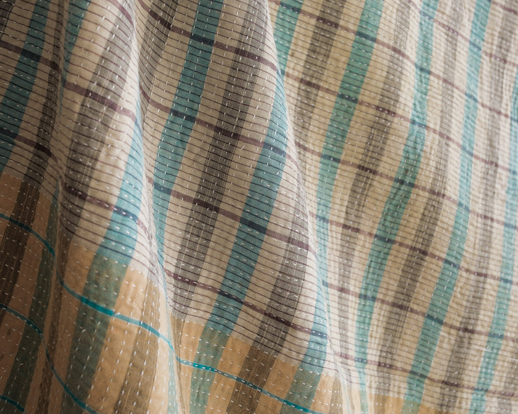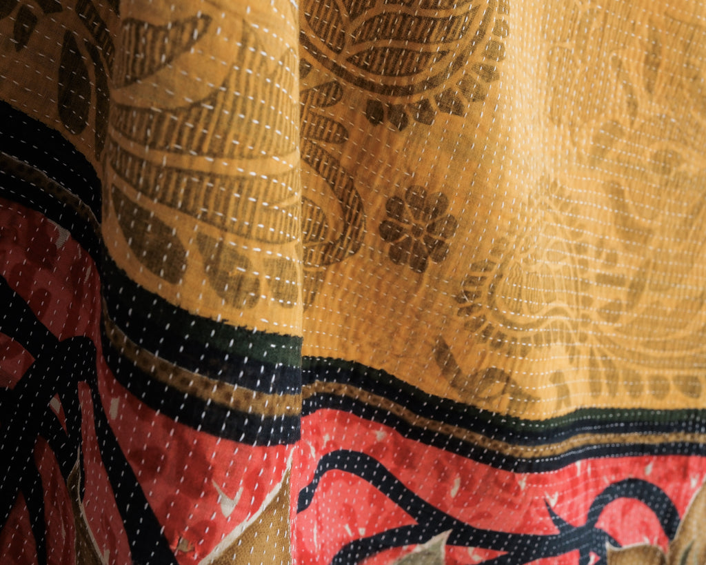 Kantha quilts are made for household use in rural parts of Bengal and Bangladesh. Favourite prints, saris, and beloved lengths of cloth are stitched together with plain and coloured threads. Every quilter has her own individual style. These quilts are used as bedcovers, blankets, tablecloths, picnic blankets, car blankets, couch blankets ... there is no limit to the utility of these textiles. We love the history and stories each one holds.