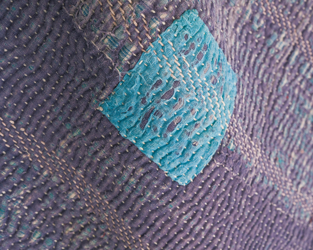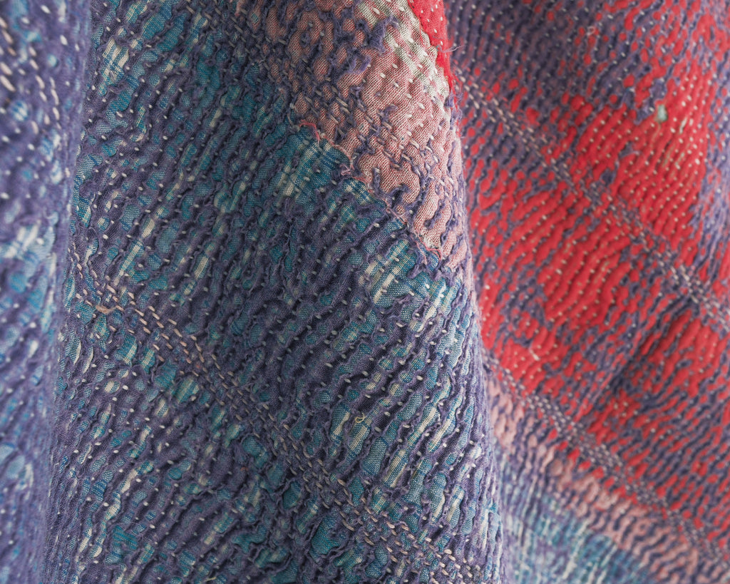 Kantha quilts are made for household use in rural parts of Bengal and Bangladesh. Favourite prints, saris, and beloved lengths of cloth are stitched together with plain and coloured threads. Every quilter has her own individual style. These quilts are used as bedcovers, blankets, tablecloths, picnic blankets, car blankets, couch blankets ... there is no limit to the utility of these textiles. We love the history and stories each one holds.