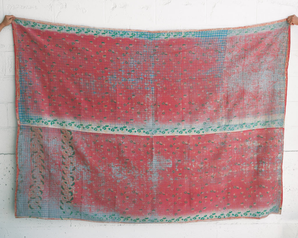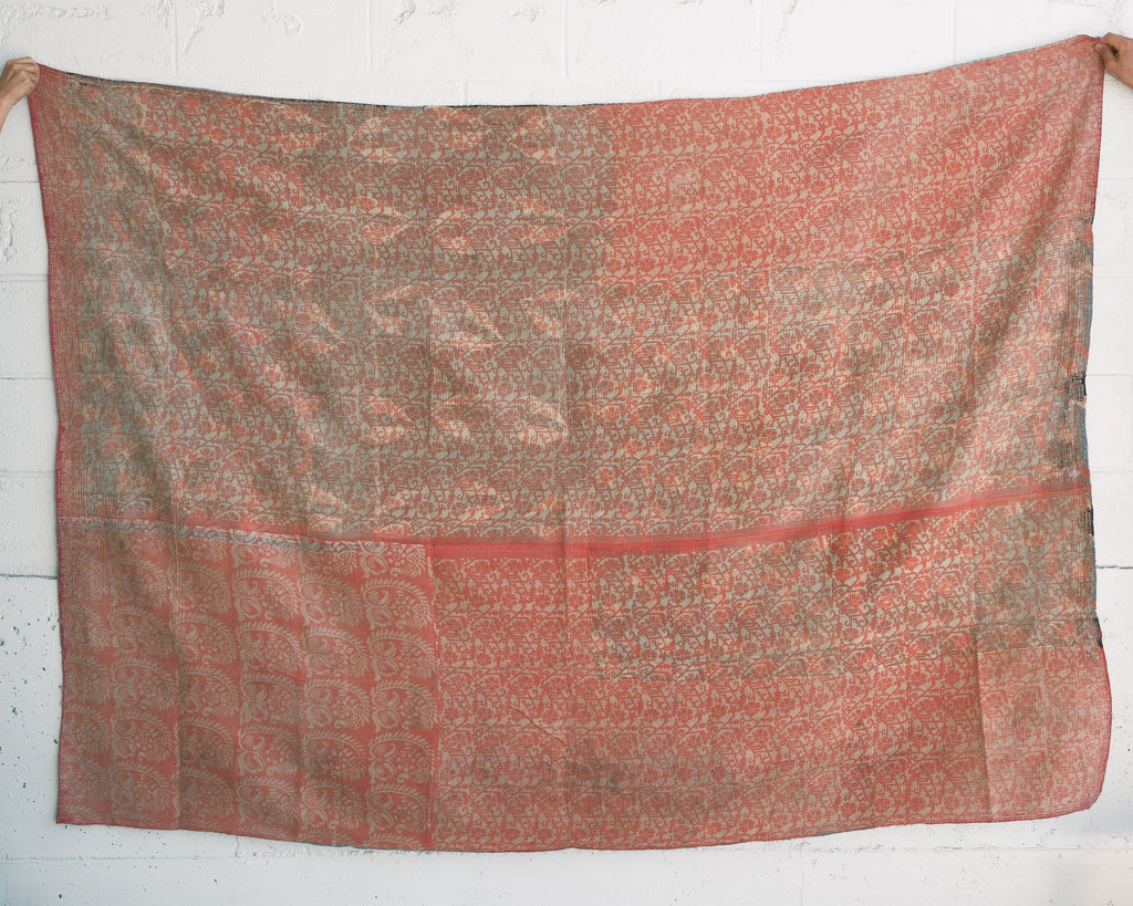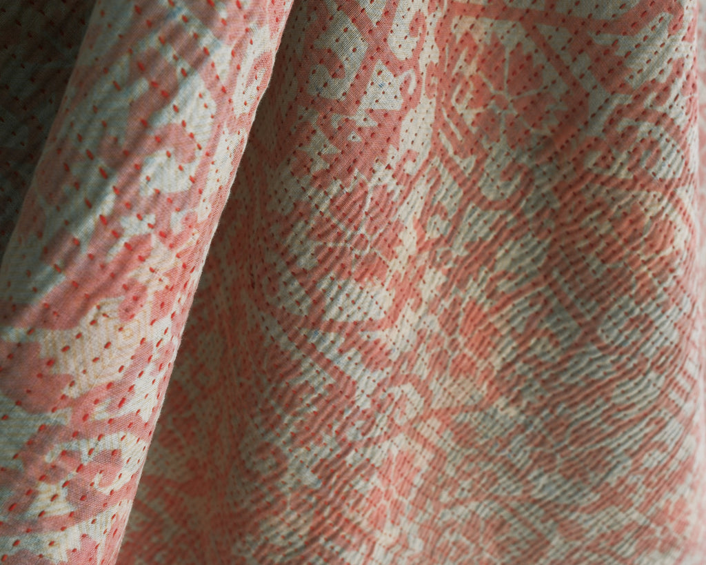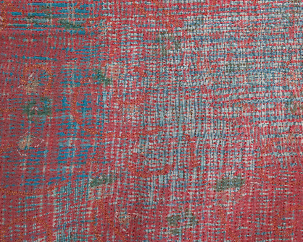 Kantha quilts are made for household use in rural parts of Bengal and Bangladesh. Favourite prints, saris, and beloved lengths of cloth are stitched together with plain and coloured threads. Every quilter has her own individual style. These quilts are used as bedcovers, blankets, tablecloths, picnic blankets, car blankets, couch blankets ... there is no limit to the utility of these textiles. We love the history and stories each one holds.