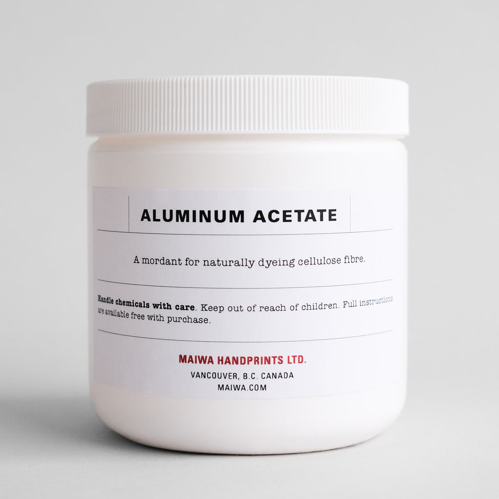 Aluminum Acetate is sometimes preferred over Alum to mordant cellulose fibres and fabrics. It is the salt of aluminum, hydroxide and acetate. Some people find that natural dyes develop to a richer shade on cellulose when mordanted with Aluminum Acetate.