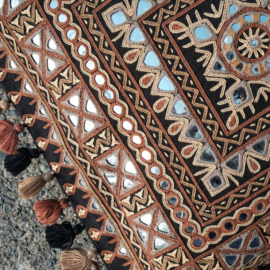 Kachchh Embroidery - 16" Cushion Cover - Rabari - Sand Bliss