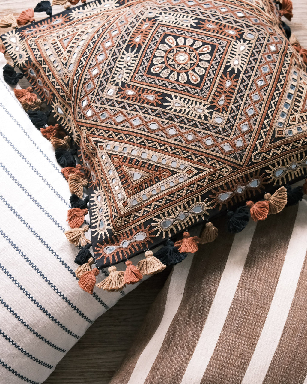 Nothing can bring your home to life like an embroidered cushion cover. Elegant, playful, colourful, or subtle, these cushion covers provide a stage on which stitch work absolutely sings.