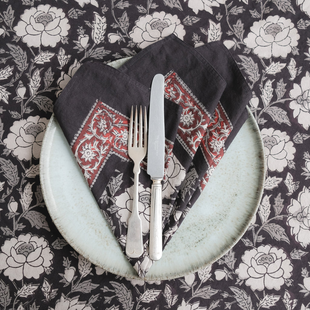 Process: Block printed by hand with natural dyes by master craftspeople in Rajasthan, India.