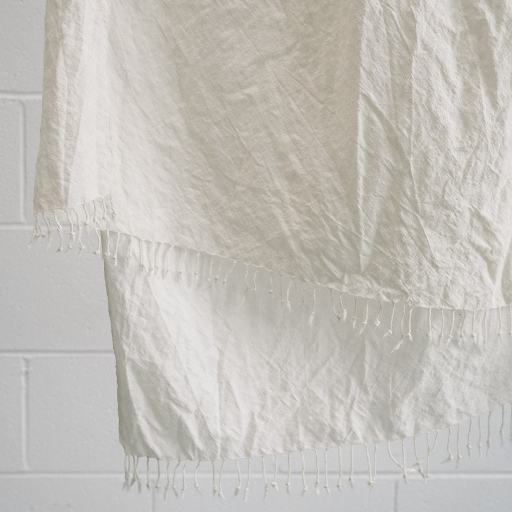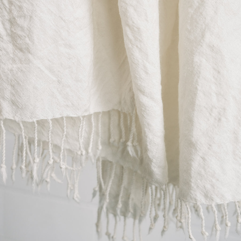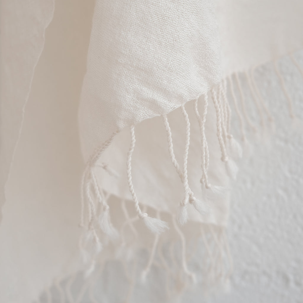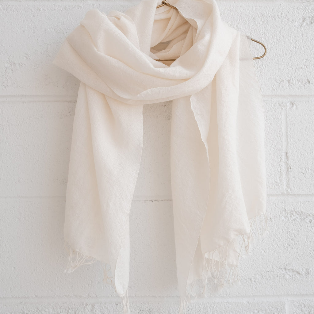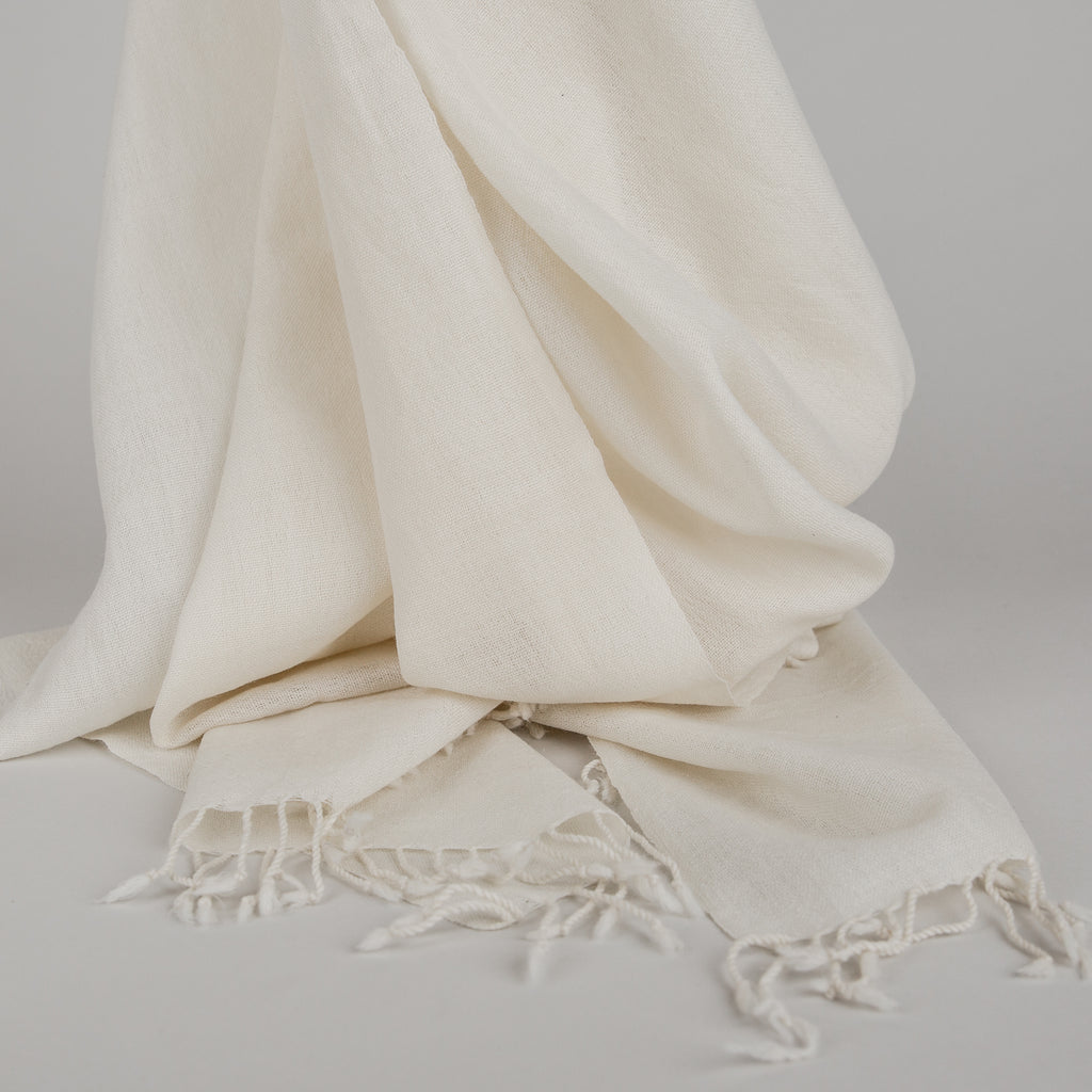This scarf is handwoven 100% fine merino wool. Handwoven by village artisans in India in partnership with Maiwa.
