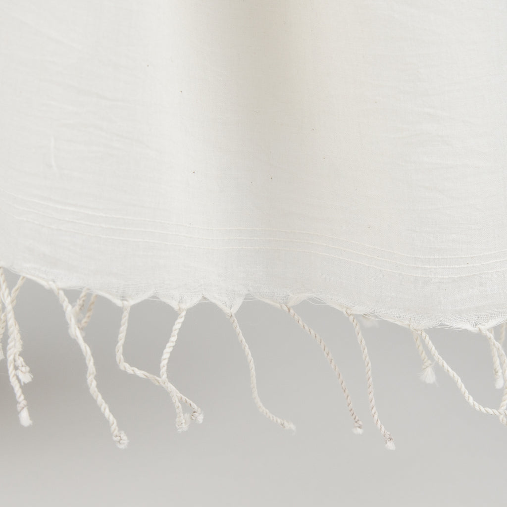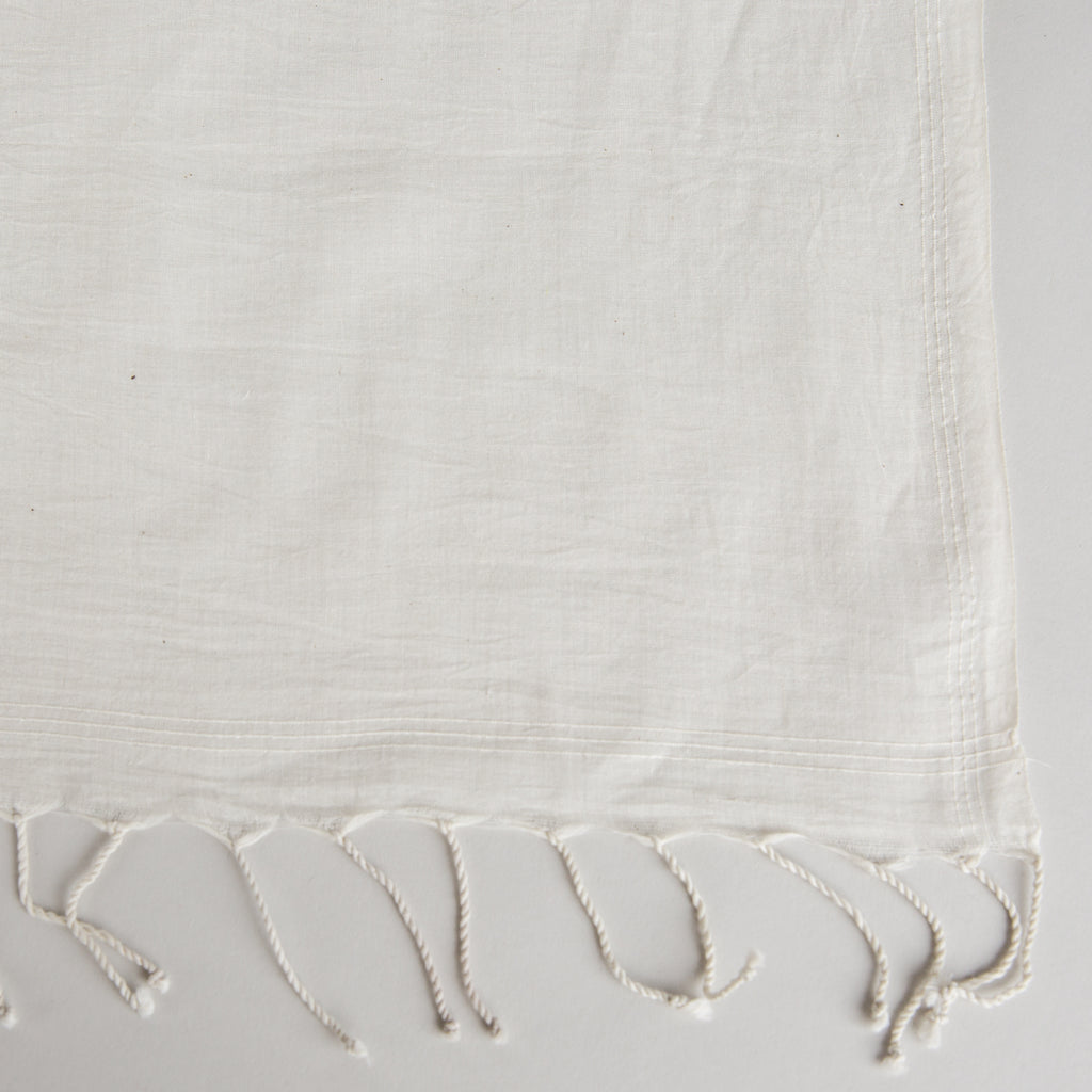 These fine cotton scarves are handspun and handwoven in India in partnership with Maiwa. They have a tasseled edge, lightweight with lovely drape and are perfect for a creative project such as dyeing, shibori and itajime.