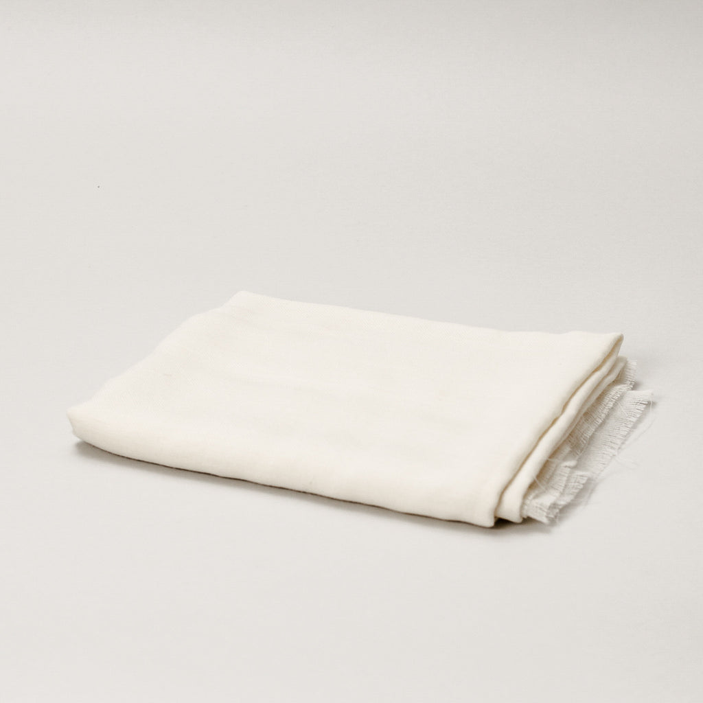A soft wool shawl that is twill woven using fine merino wool. It is both warm and lightweight. The raw fringe gives a clean finish to the shawl. It measures approximately 71cm x 203cm (28” x 80”) and takes dye very well. We love using natural dye extracts on these.