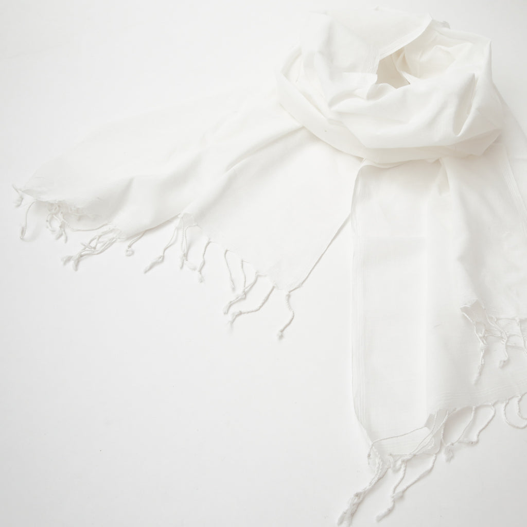 Scarves - Cotton Fine Handspun Handwoven - White (12 Pack)