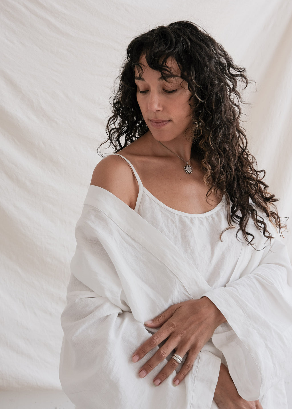 Yayla Robe - Handwoven Linen & Cotton - Cloud White