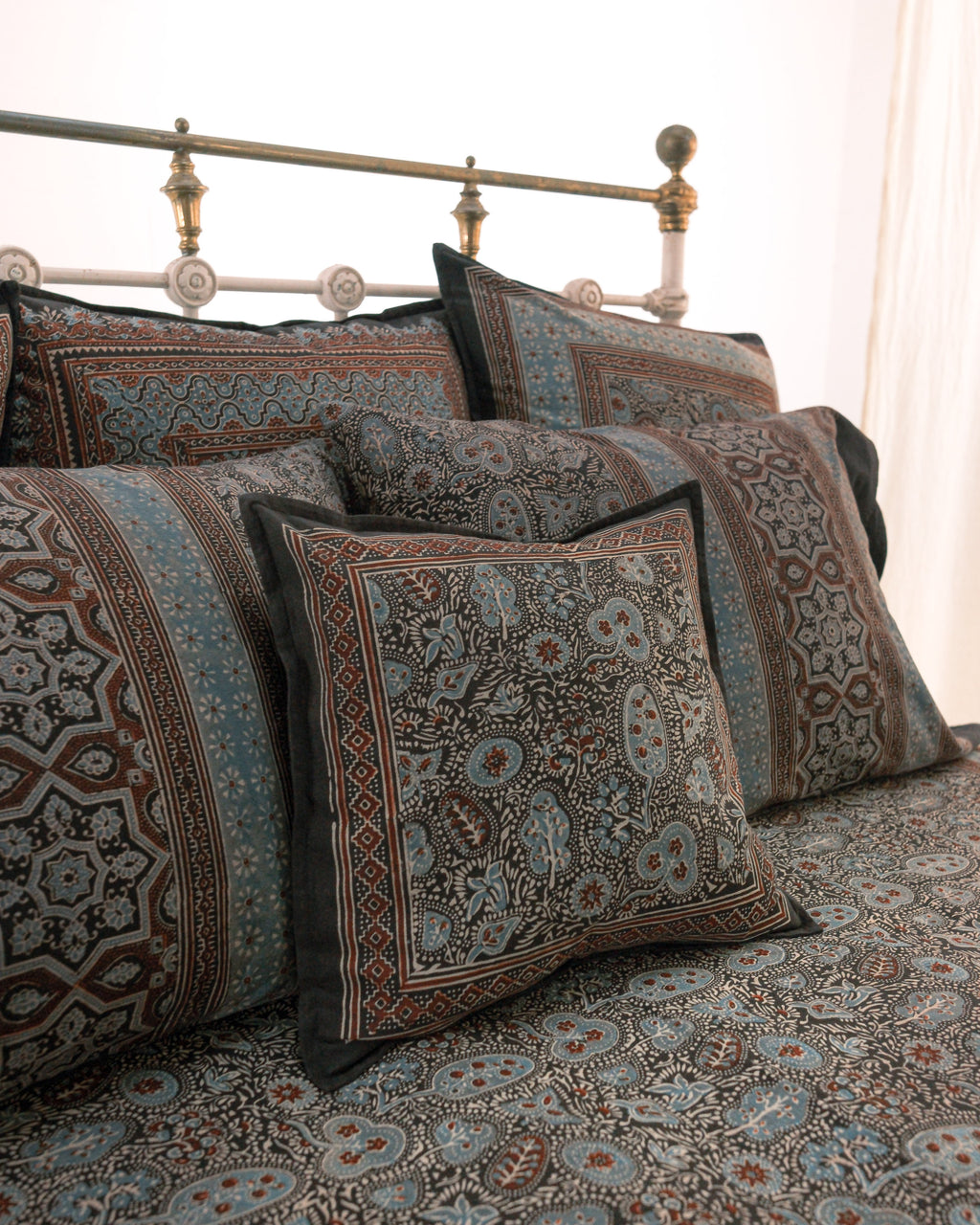 Organic Cotton Cushion Cover - Ajrakh Secret Garden