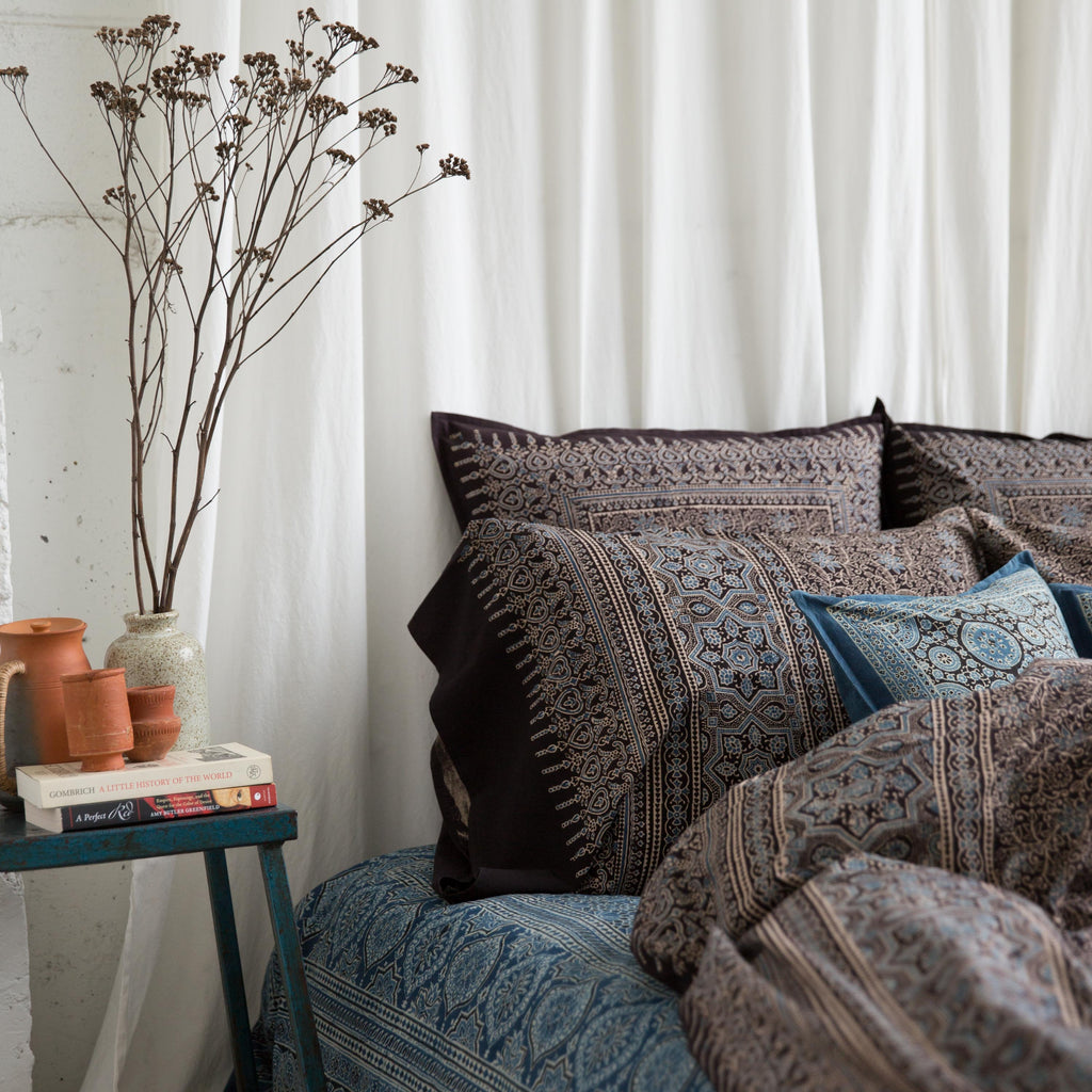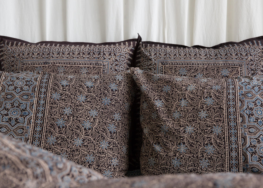 Organic Cotton Pillowcase - Ajrakh Night Vine