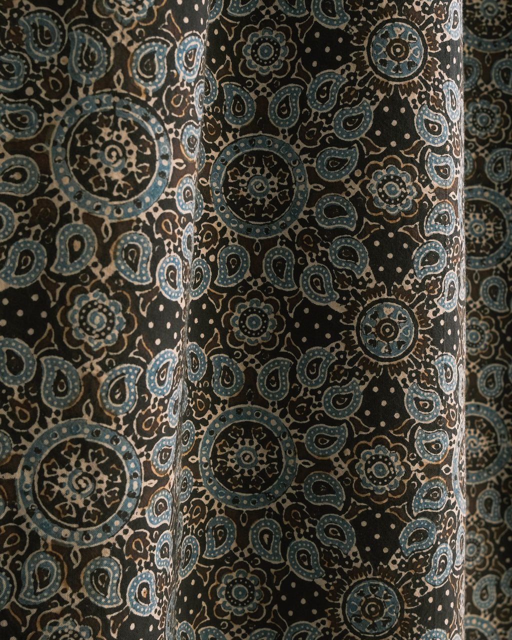 The process of making an Ajrakh is a long one, involving between thirteen and twenty distinct steps. The many processes of scouring, washing, printing, dyeing, and final washing can take up to three weeks to complete. Much of the beauty and depth of Ajrakh cloth comes from the intricacy of the imprint that is left by the artisan’s hand. Slight variations are to be celebrated.