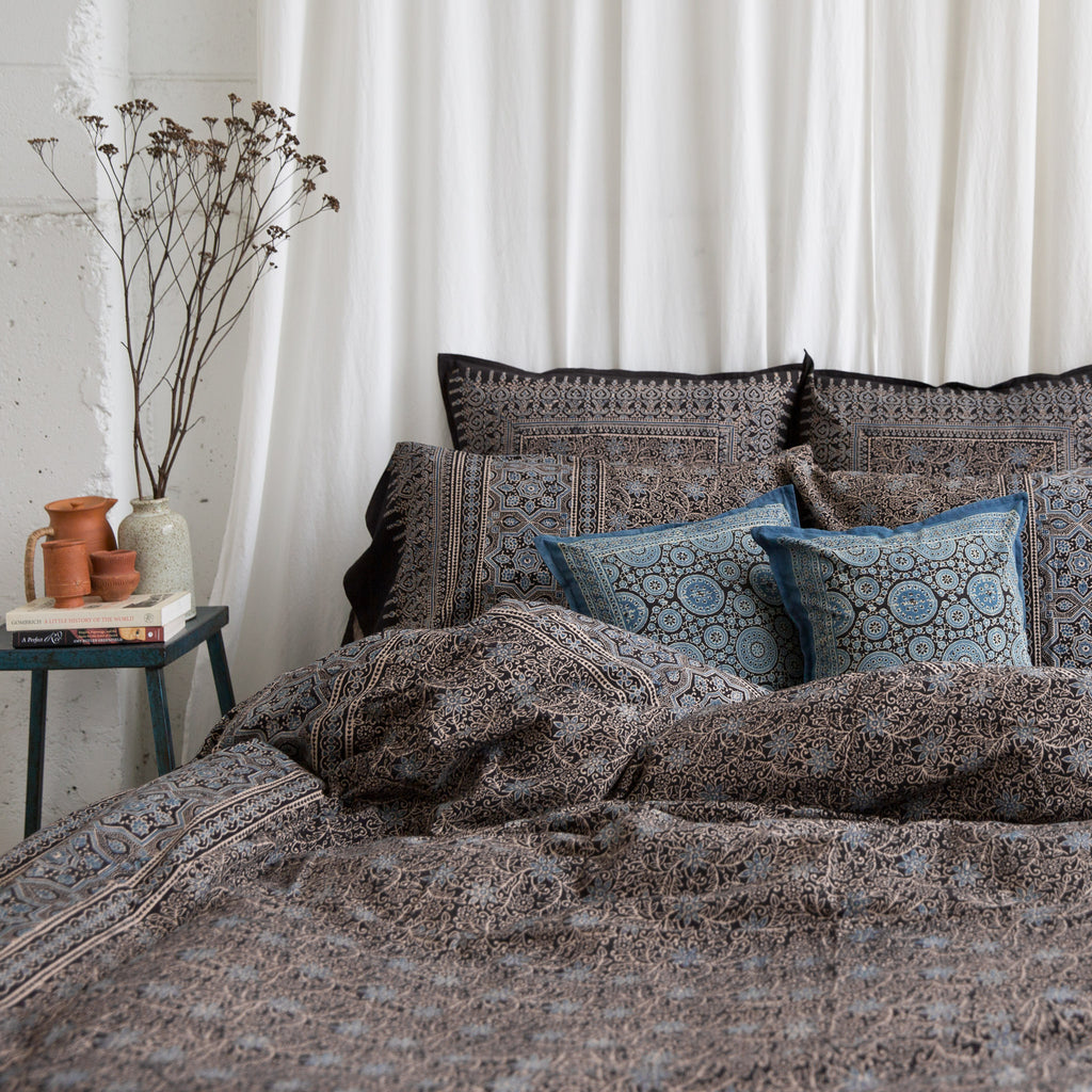 Process: Block printed by hand with natural dyes by master craftspeople in Kachchh, India.