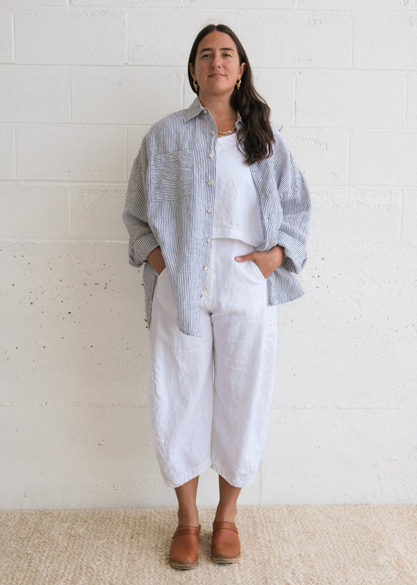 We design and sew all of our clothing in-house in our own studios in Vancouver, Canada, and in India. Our garments feature a range of artisan techniques such as handwoven cloth, handspun threads, block printing, ikat dyeing, hand-tied bandhani and natural dyes. Read more about Maiwa's Slow Clothes and how they fit a variety of body types.