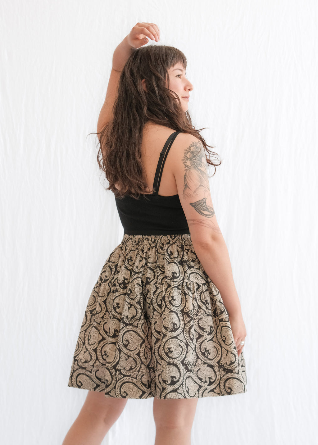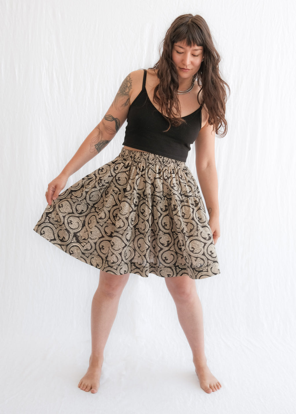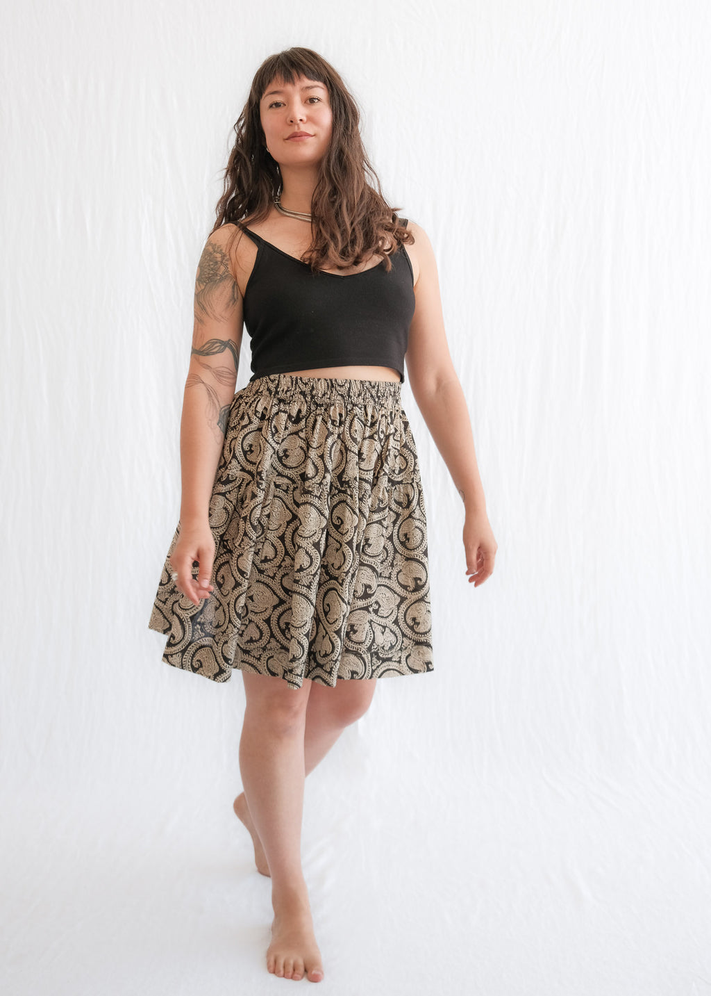 Calico Skirt - Organic Cotton Block Print - Iron Paisley
