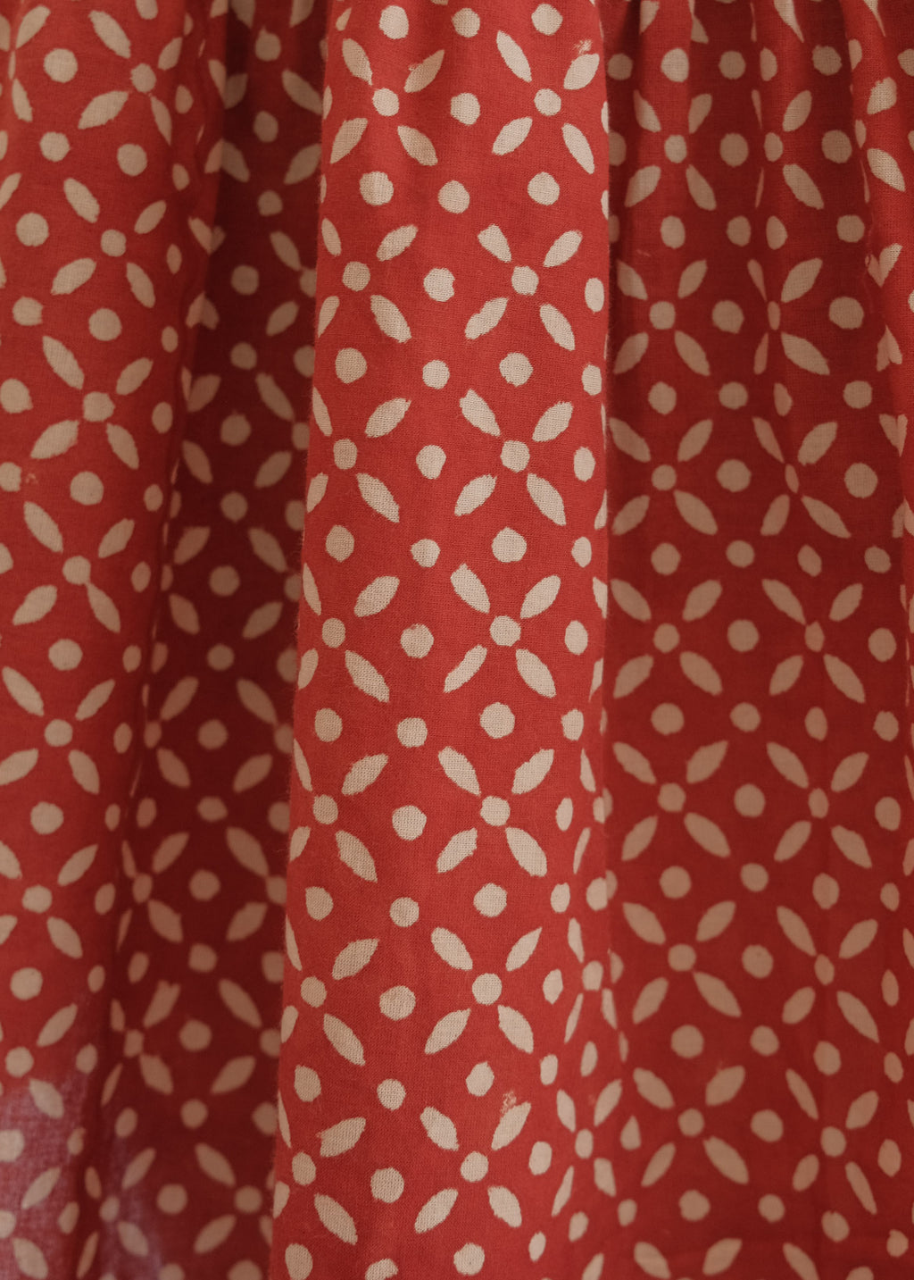 Part of the beauty of Dabu cloth lies in the fact that each block is placed by the artisan’s hand - what is left behind is an imprint of the personality and character of the block printer. Slight variegations are to be celebrated.