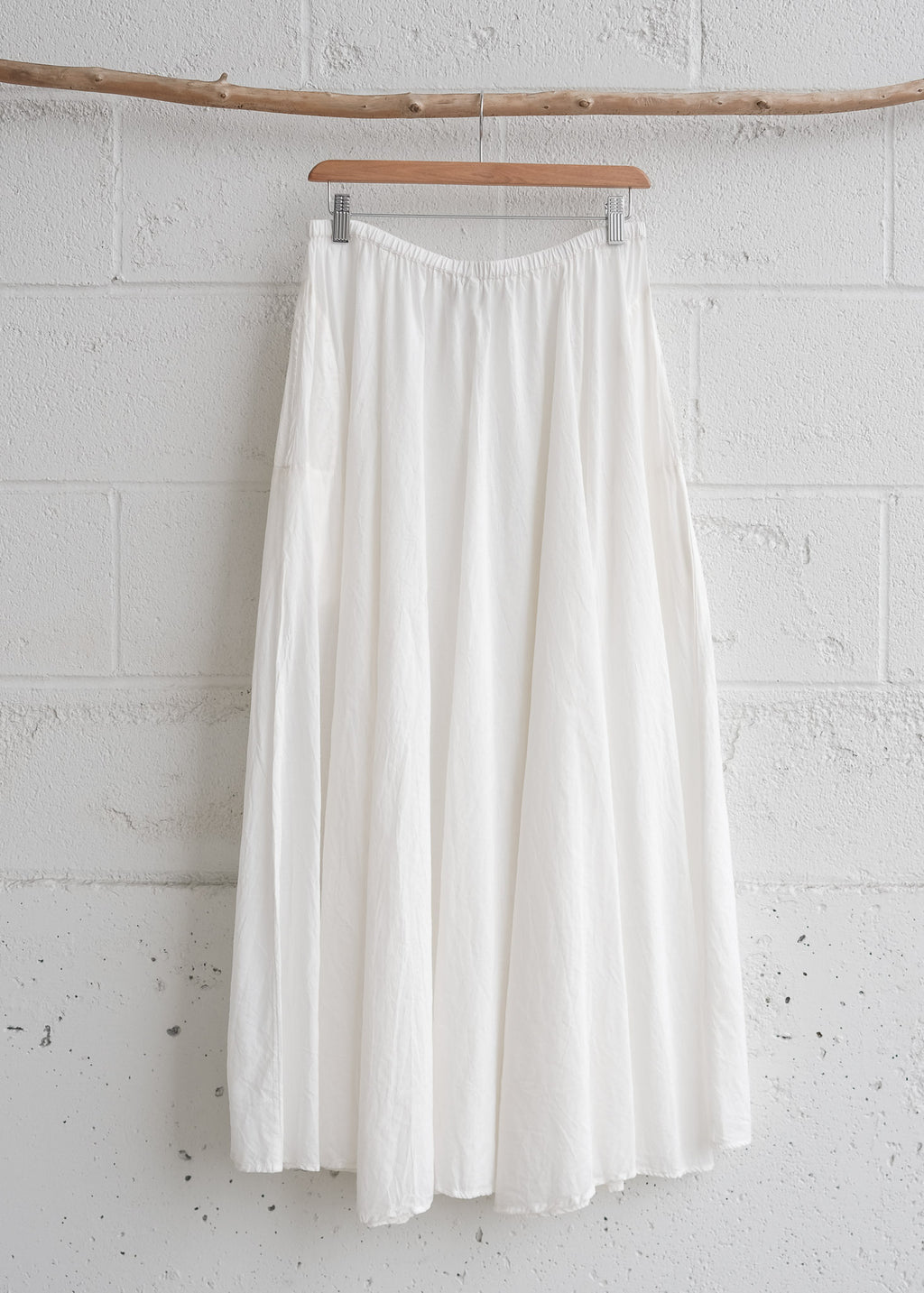 The most ideal long skirt! Made of lightweight cotton with an easy elastic waistband. Multi-panel design for great flowing shape.