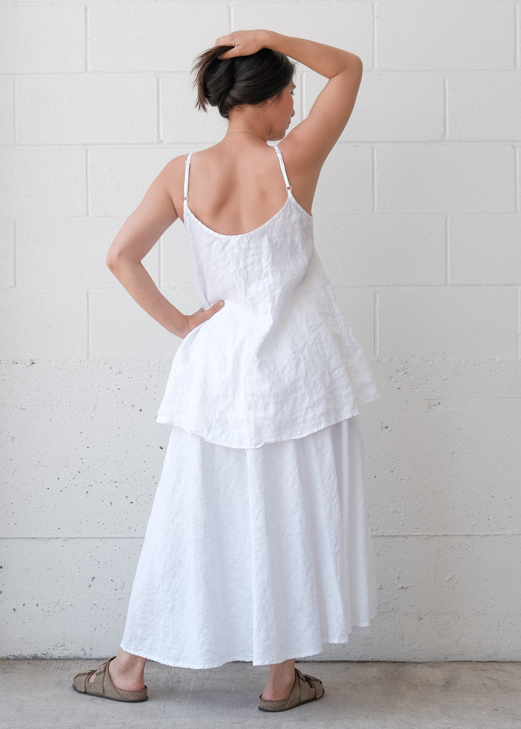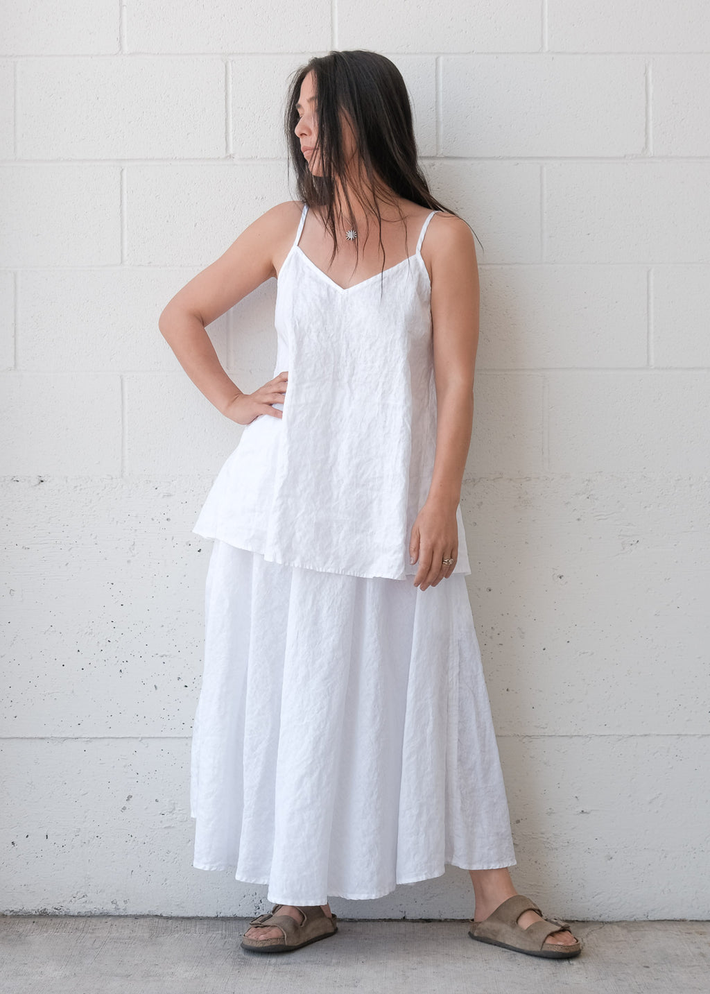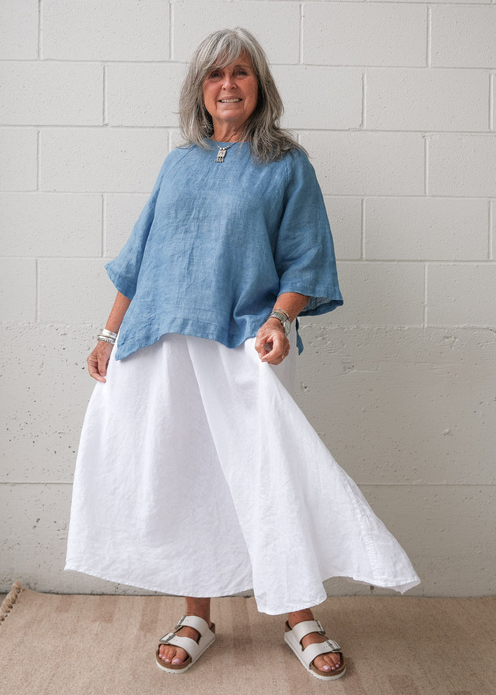 Our favourite everyday skirt which looks great on so many bodies! A bias, midi length skirt with exceptional movement.  Easy elastic waist band and side temple pockets.