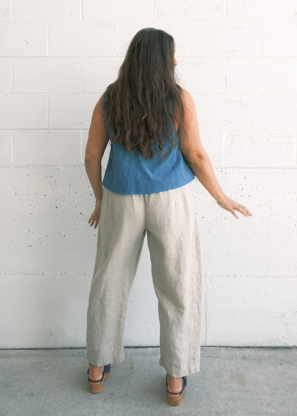 Made with linen twill fabric, the Manali Pant is designed for all-day comfort. Featuring a slightly tapered leg, front pleats, side pockets, and a wide elastic waist which ensures a flexible fit. The perfect addition to an effortless wardrobe.