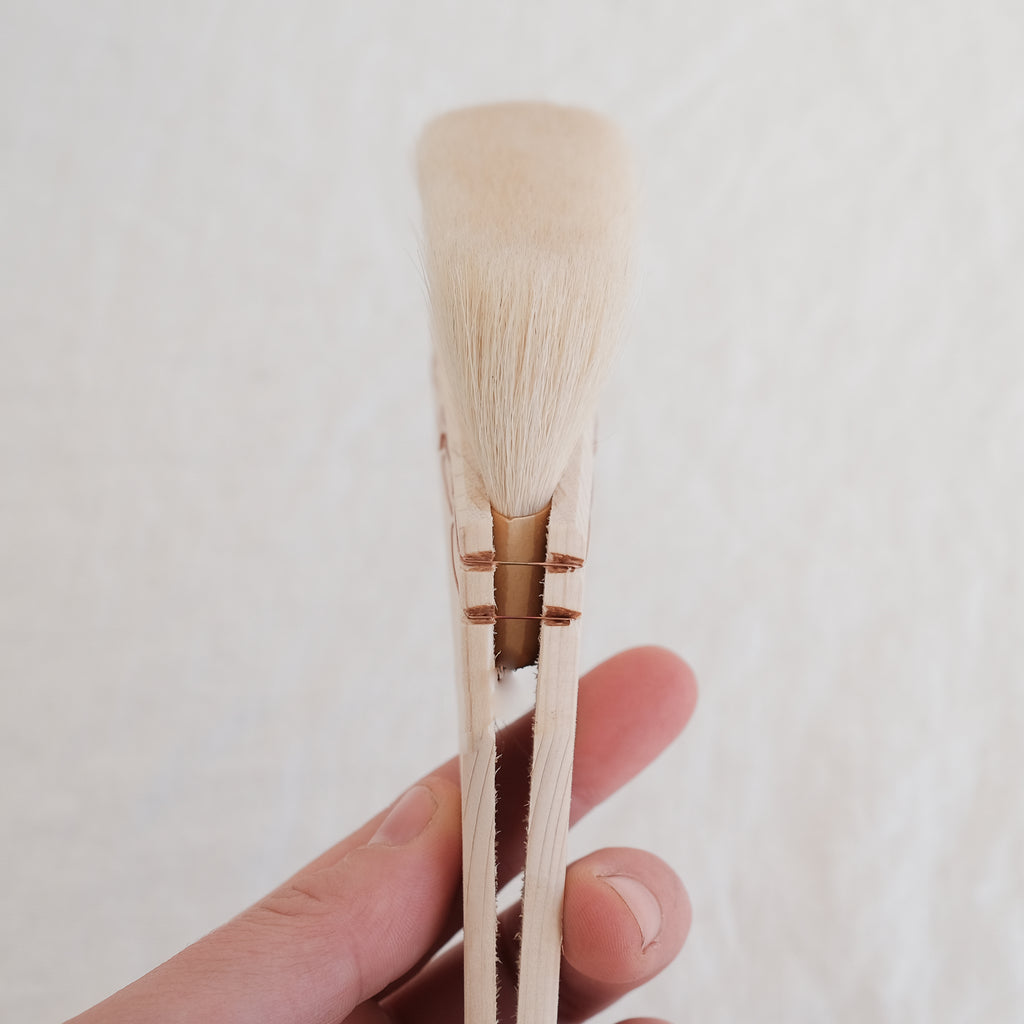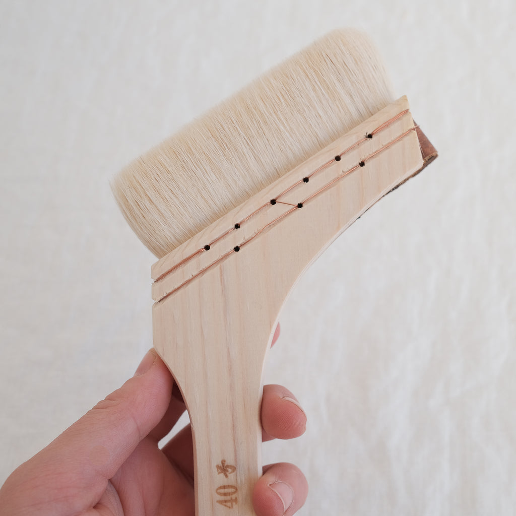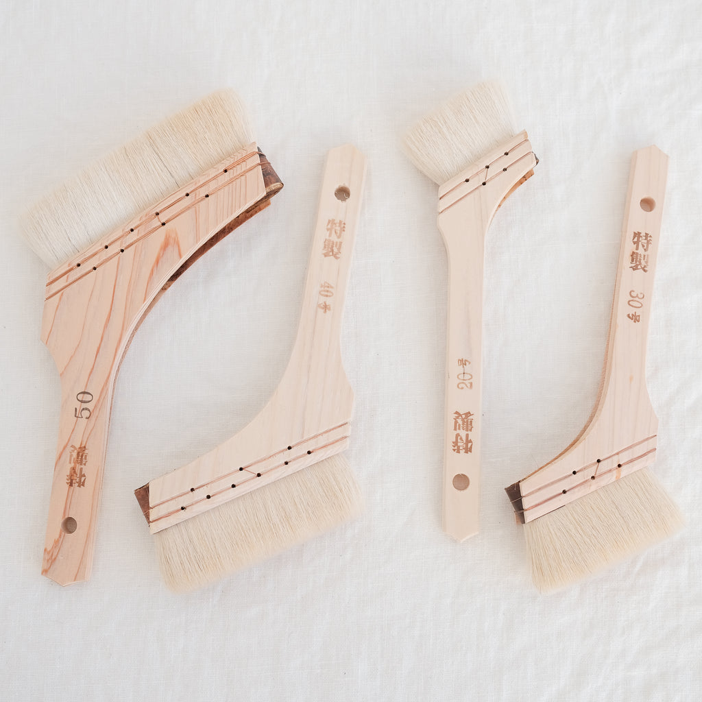 This brush is handmade in Japan and made with soft goat hair.  Great for applying soymilk or dyes and covering large areas.