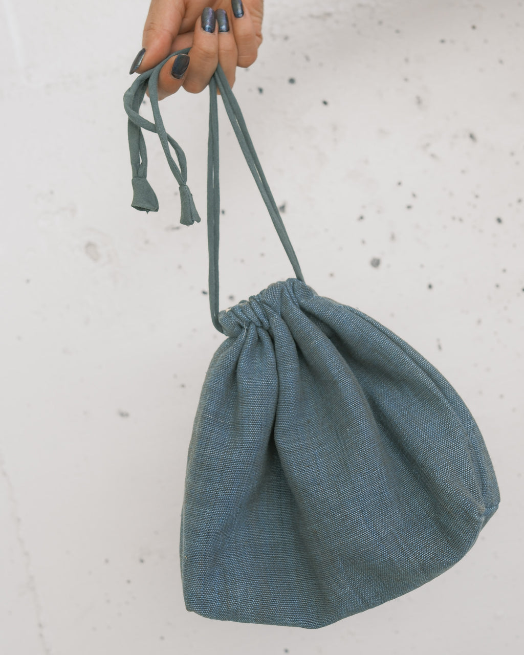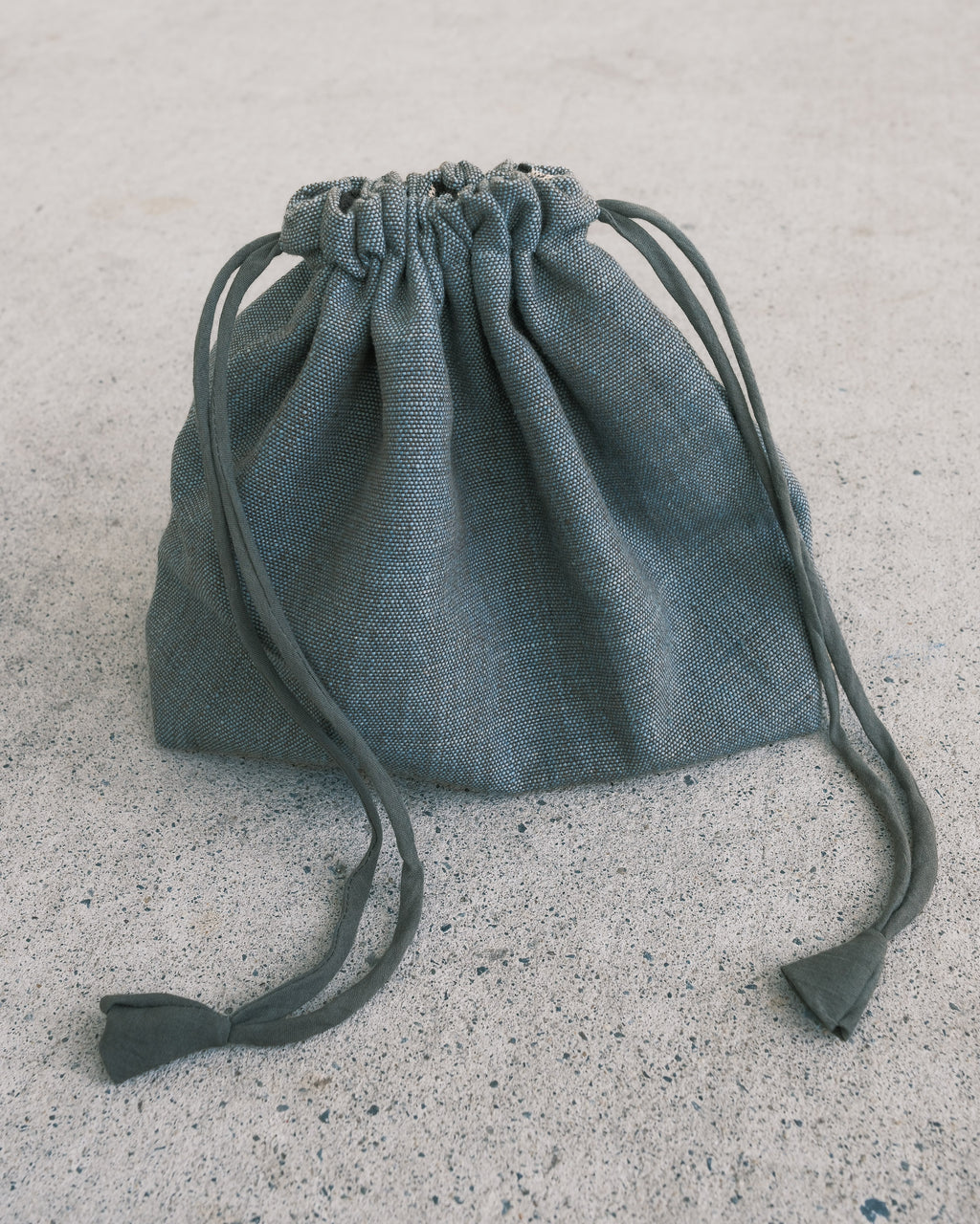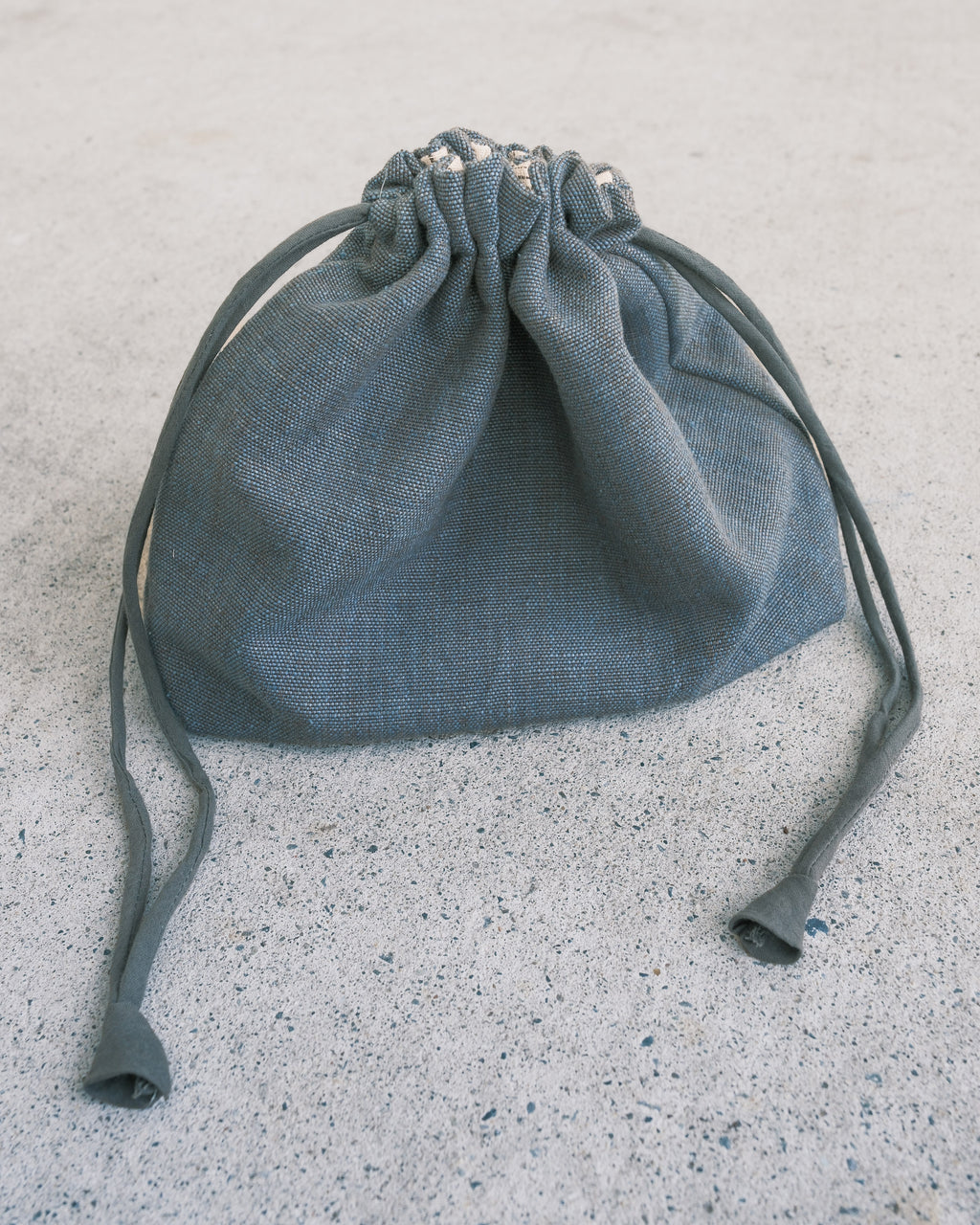 This perfect drawstring bag features naturally dyed and handwoven artisan cloth. Lined with a contrasting fabric, these little bags also have an inner pocket, drawstring ties, and a rounded bottom so it can stand on its own. A great bag for carrying your collections, projects and everything precious.