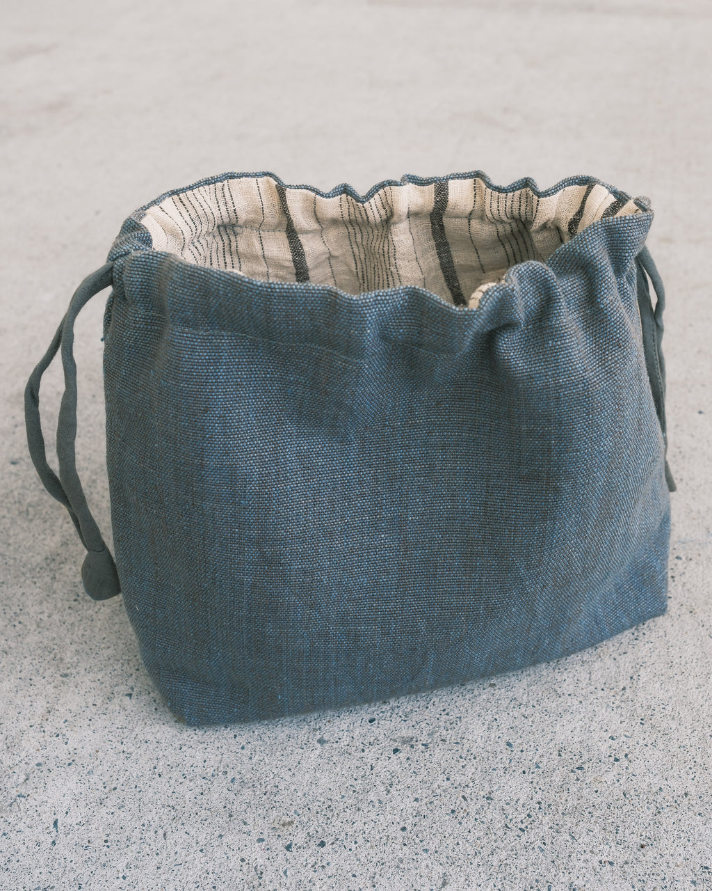 Drawstring Bag - Handwoven Cotton - Indigo Night