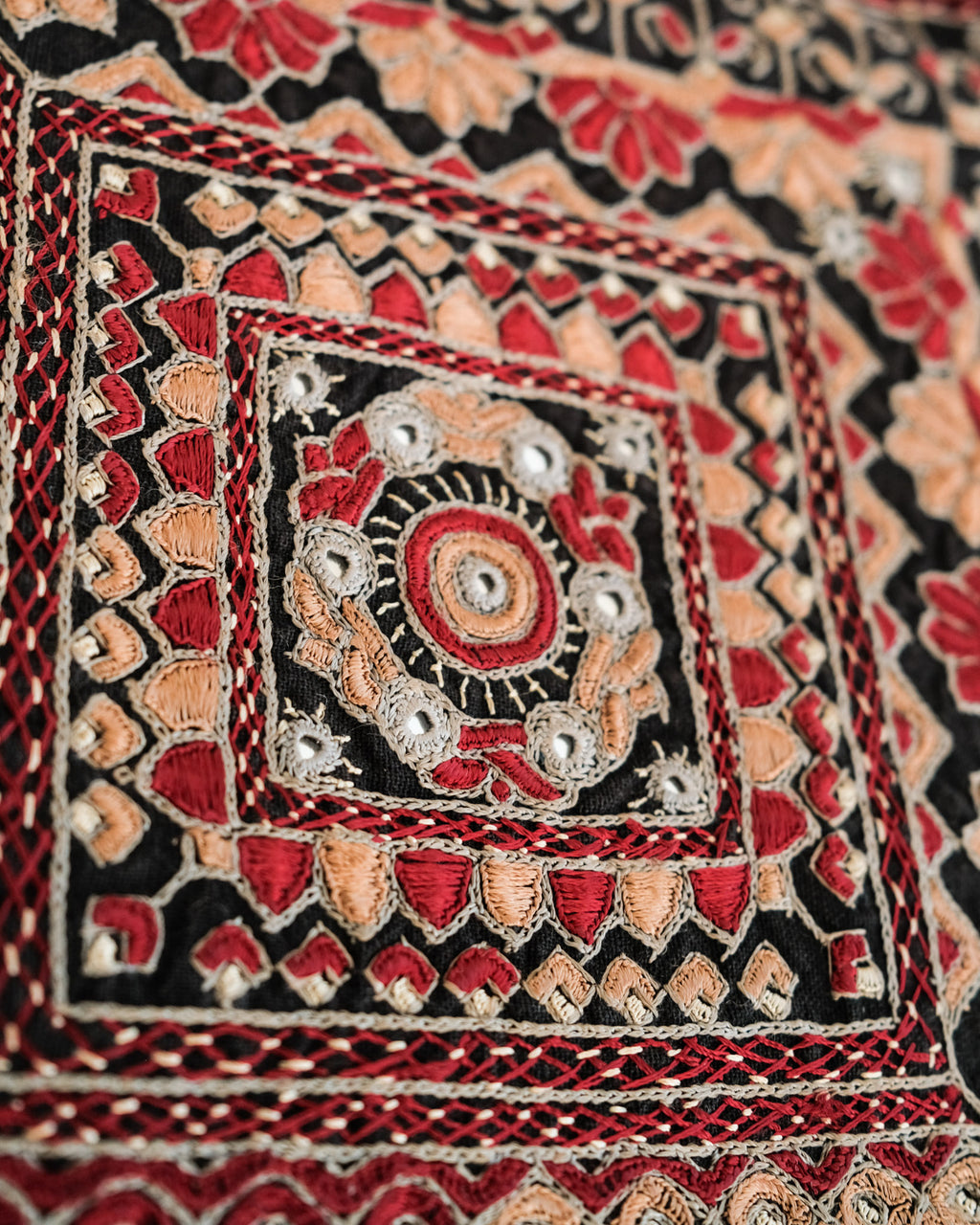 These embroideries bring the richness of desert cultures into your hands — heirlooms for the future. Each embroidery is a unique expression of the woman who made it. No two are the same.