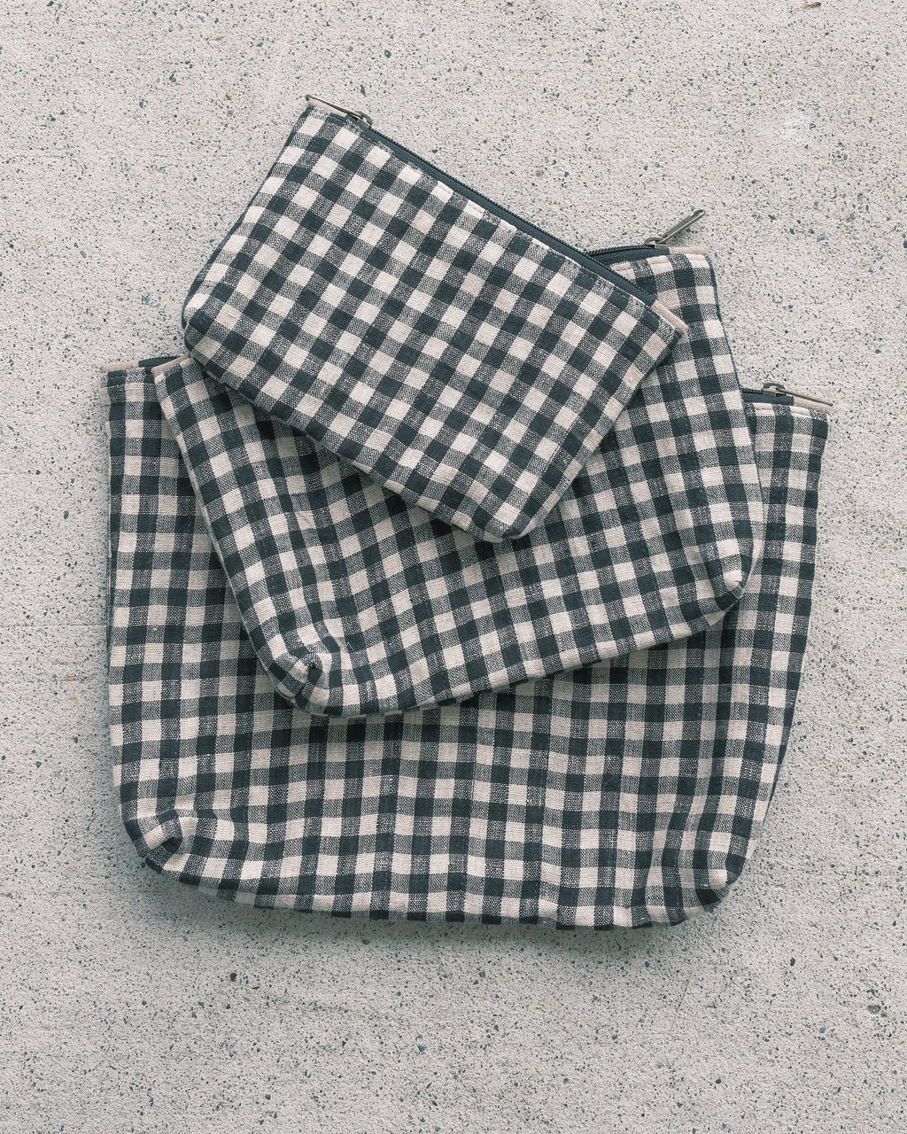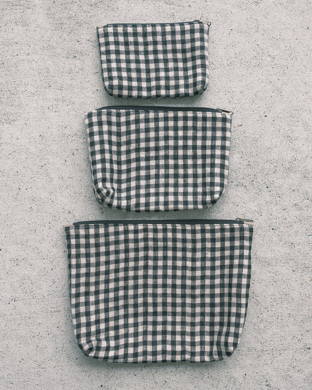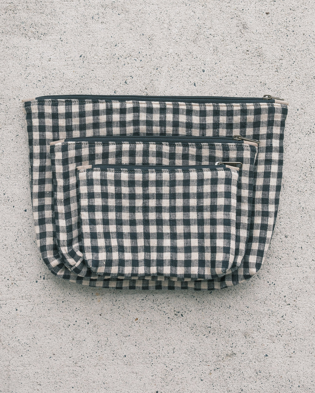 Quilted Organizer Pouches - Set of 3 - Handwoven Linen - Liquorice Gingham