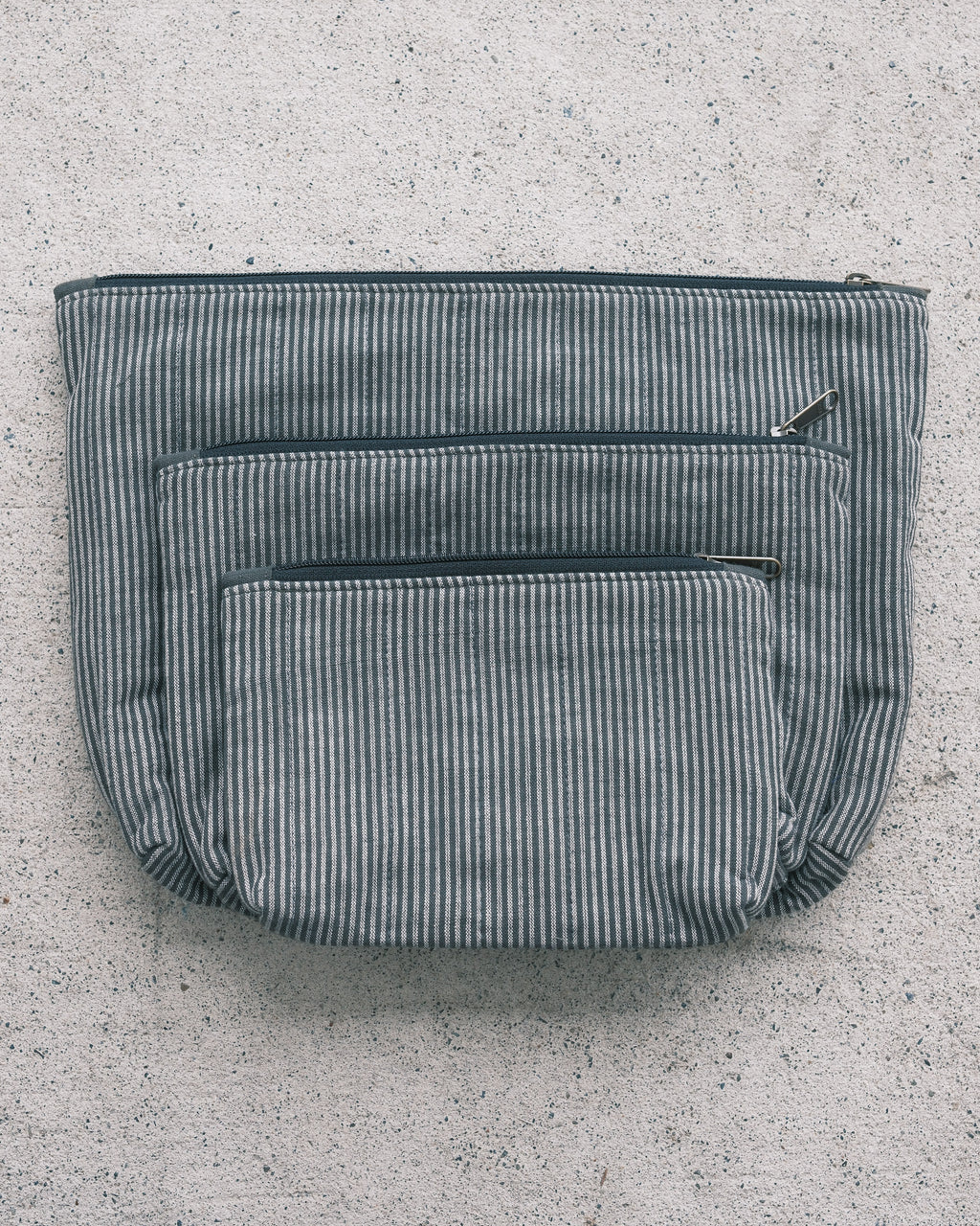 Quilted Organizer Pouches - Set of 3 - Handwoven Cotton - Driftwood