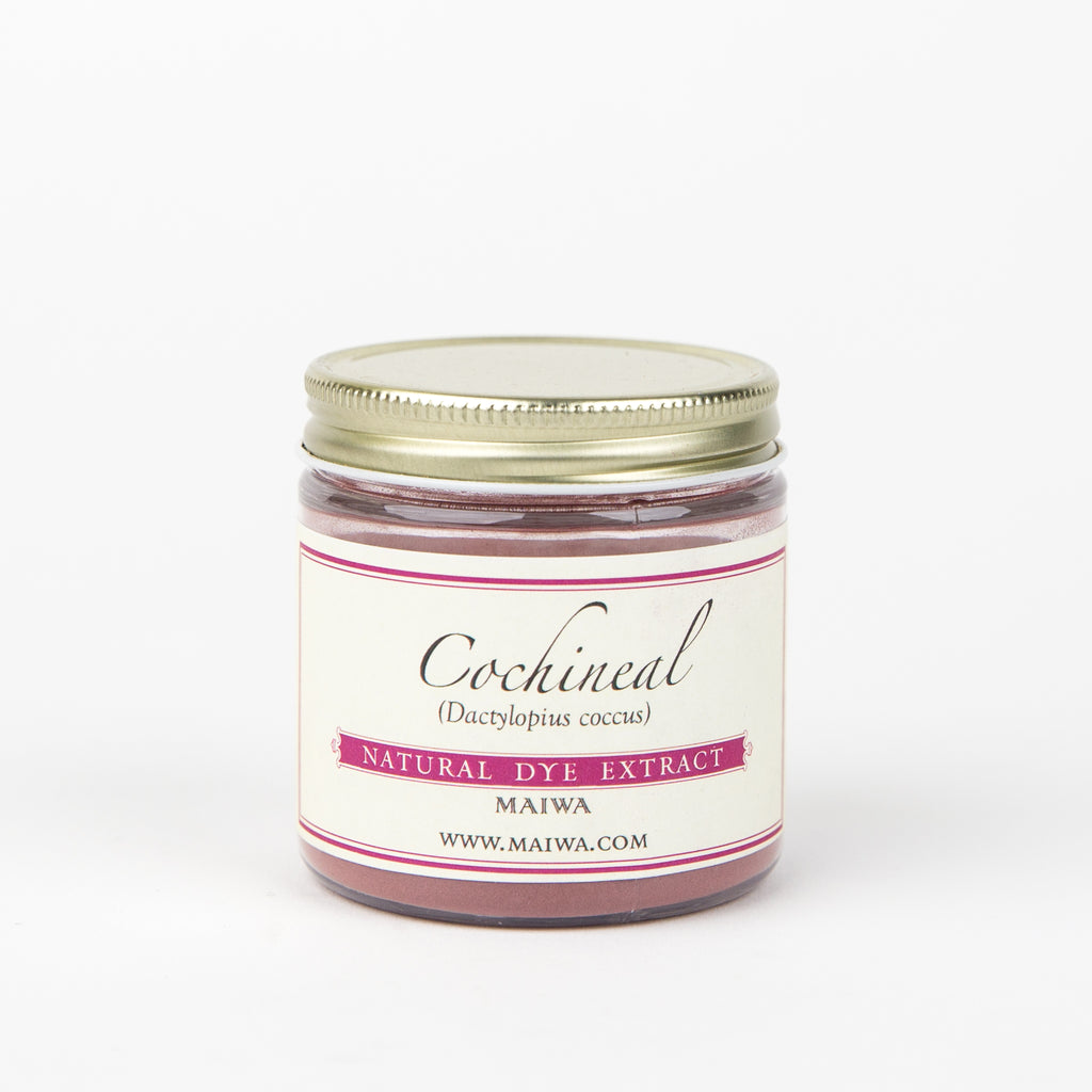 Cochineal is a parasitic insect that lives on the nopal cactus native to Central and South America. This dye has excellent light and washfastness and produces a powerful range of fuchsias, reds and purples mainly depending on mordents used and the dyes sensitivity to pH. Dyeing: Use extract on mordanted fibre at 0.5 - 2 % WOF.