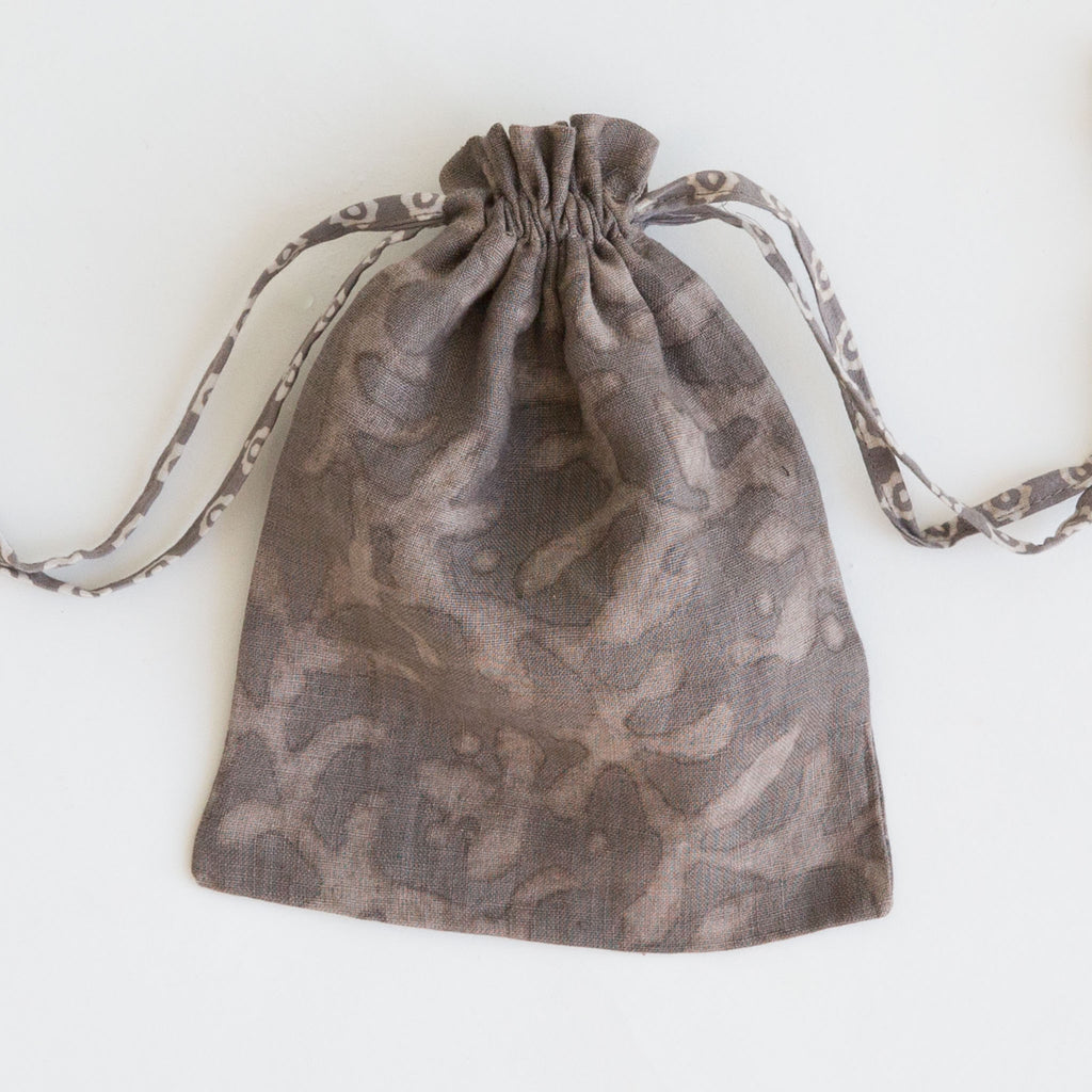 These naturally dyed drawstring bags are made with a variety of Maiwa's beautiful fabrics. They are great for carrying your essentials and perfect for gift giving.
