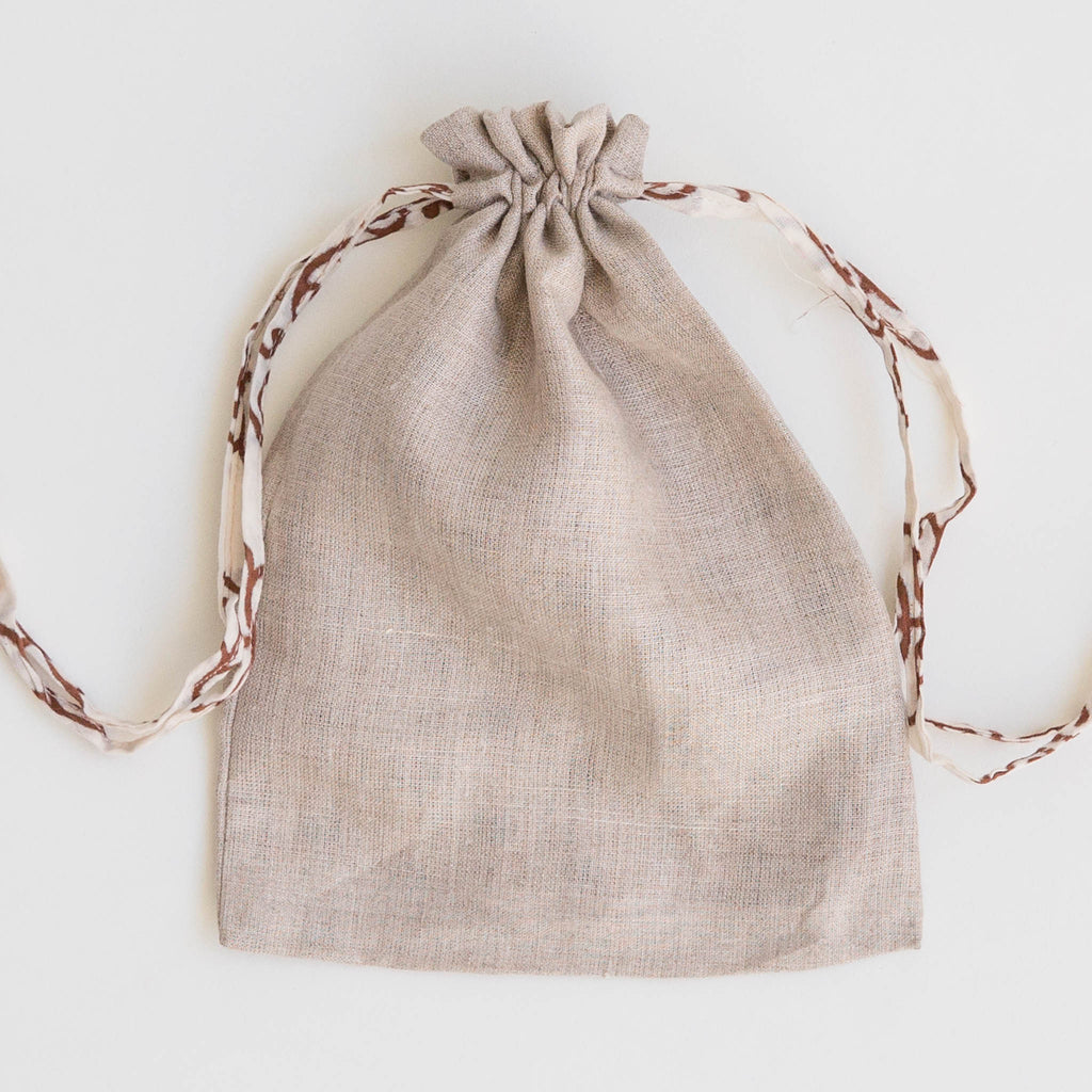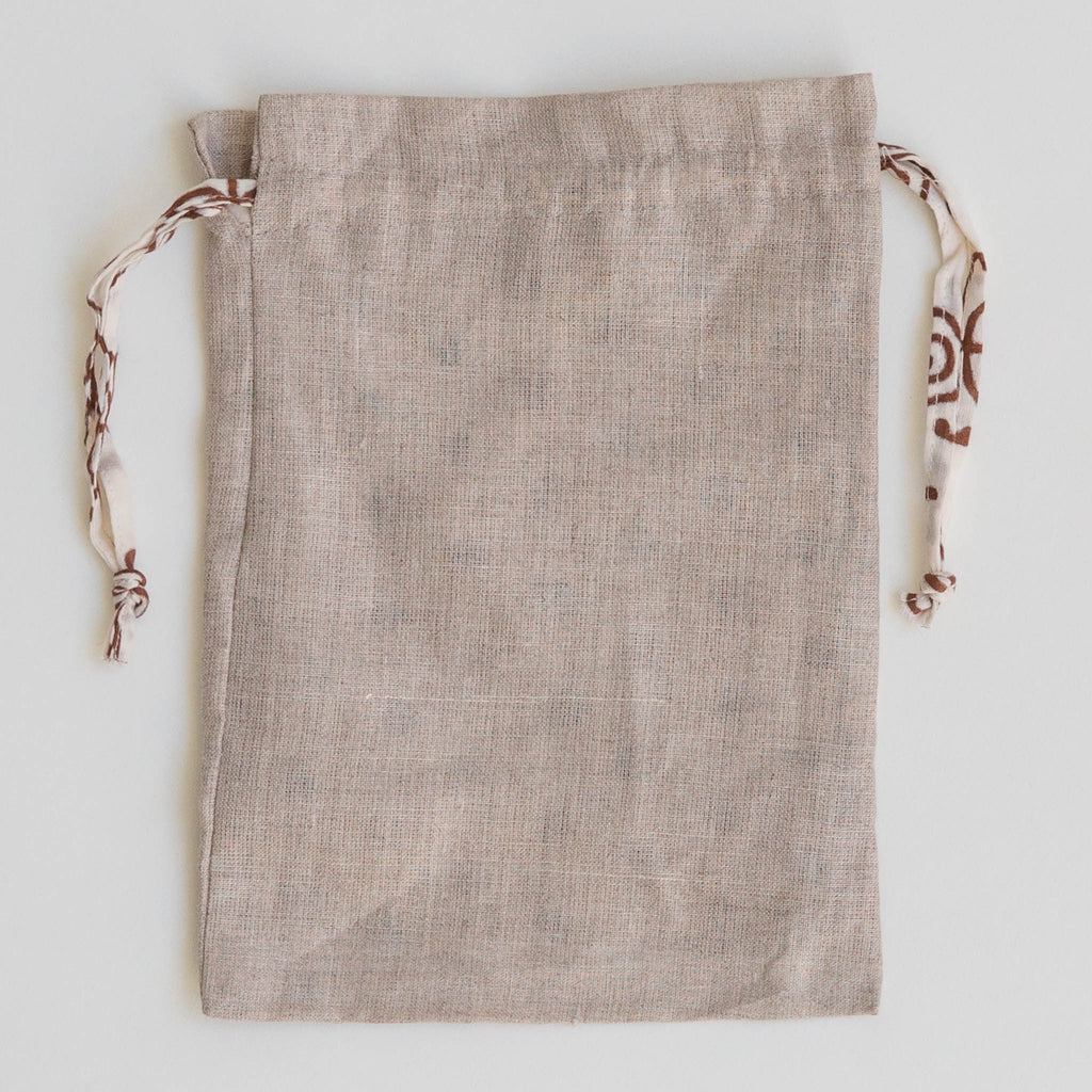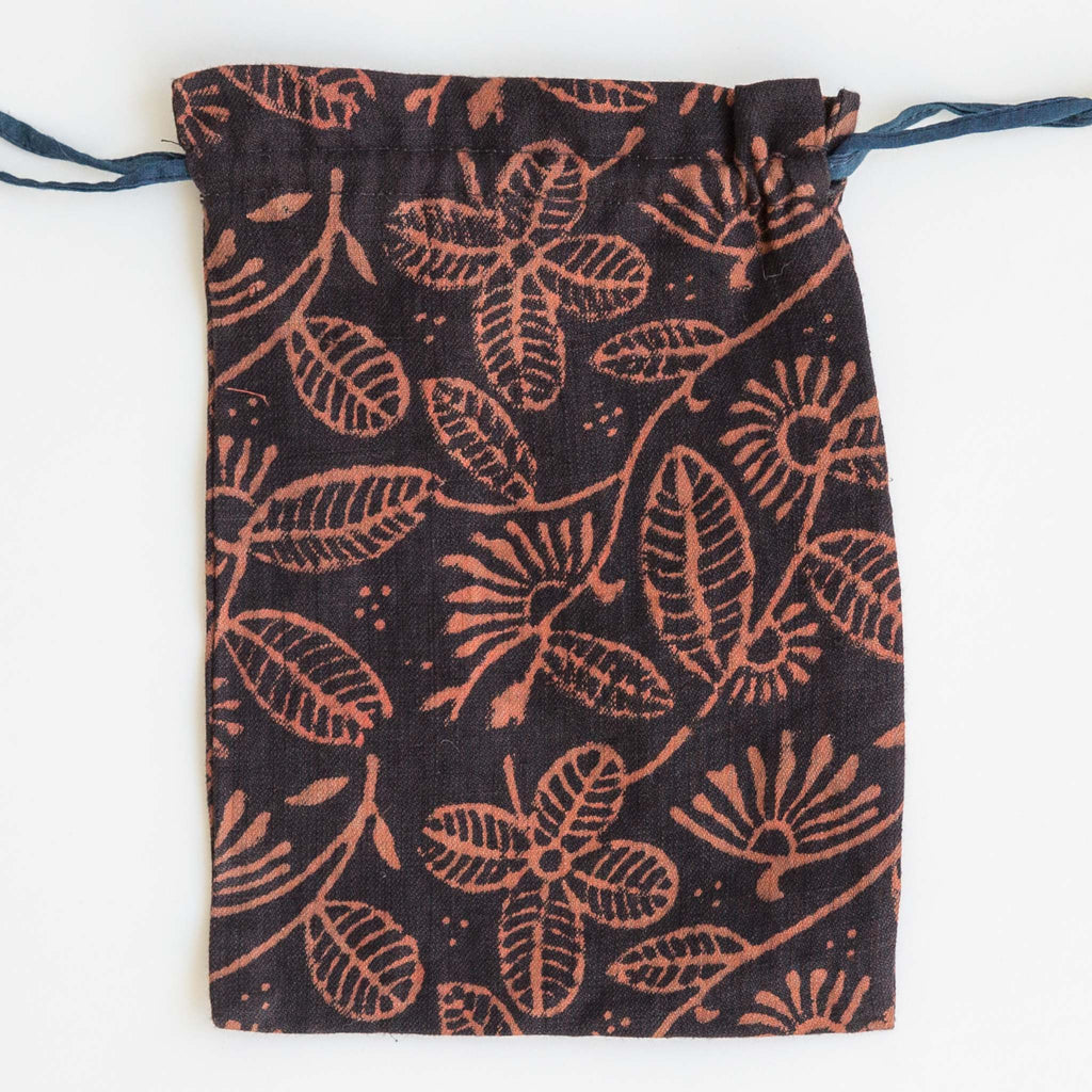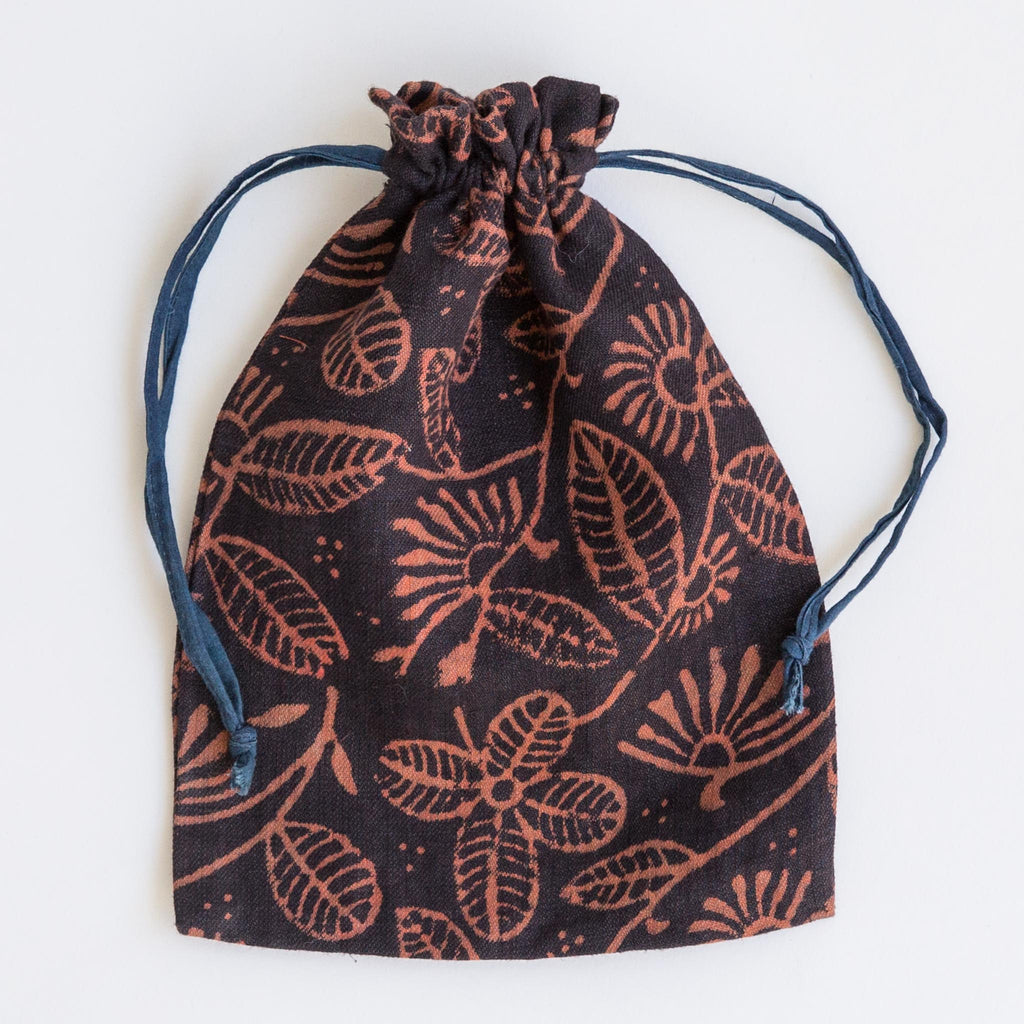 These naturally dyed drawstring bags are made with a variety of Maiwa's beautiful fabrics. They are great for carrying your essentials and perfect for gift giving.
